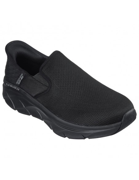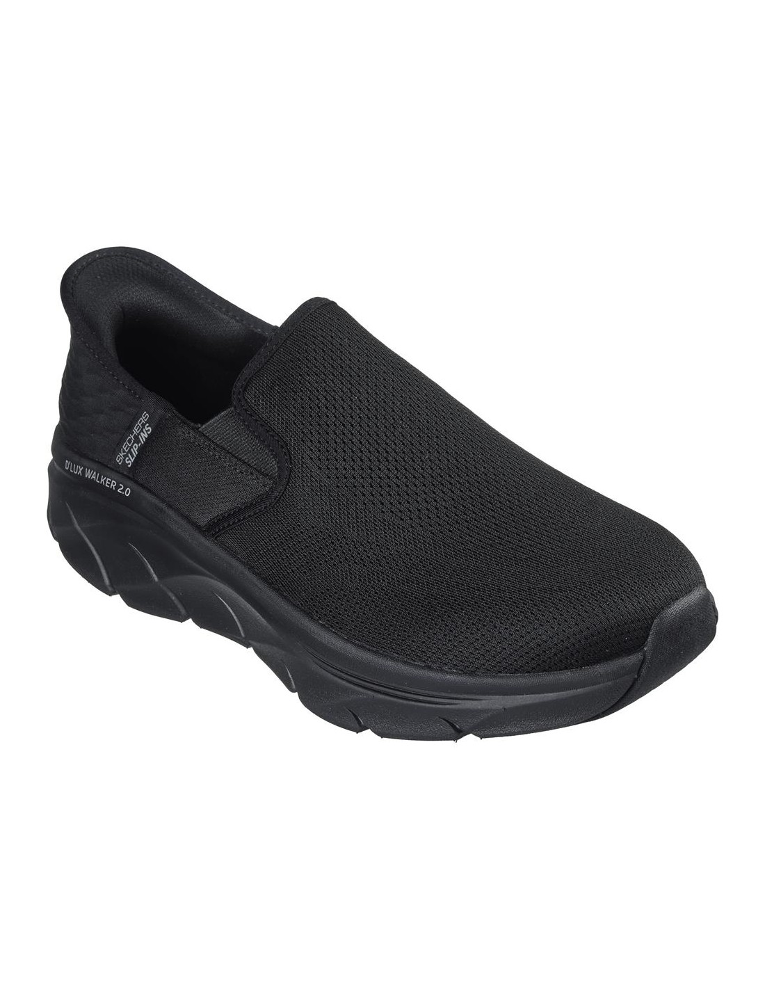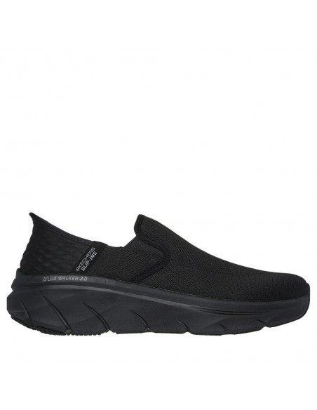 Descripción: Deportivo hombre SKECHERS D'LUX WALKER REELER de suave tejido negro. Mejor ajuste con Relaxed Fit®. Plantilla acolchada Air Coled Memory Foam . Cuña D'Lux Walker amortiguadora Skech-Foam. Sistema Slip-ins, cálzate sin manos.