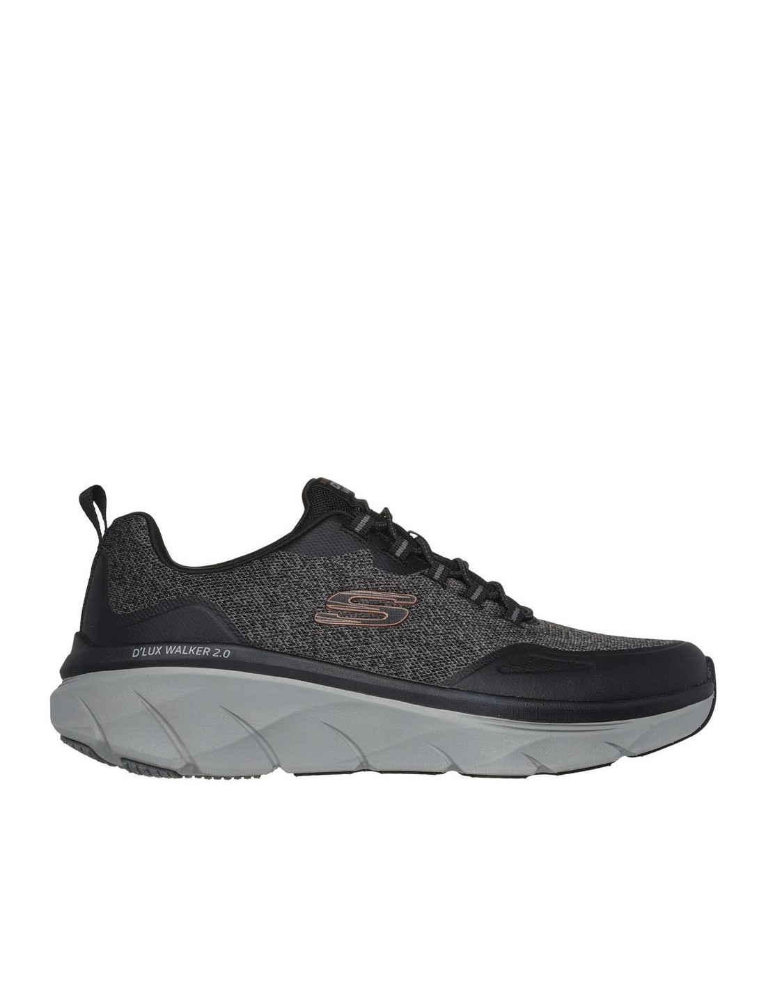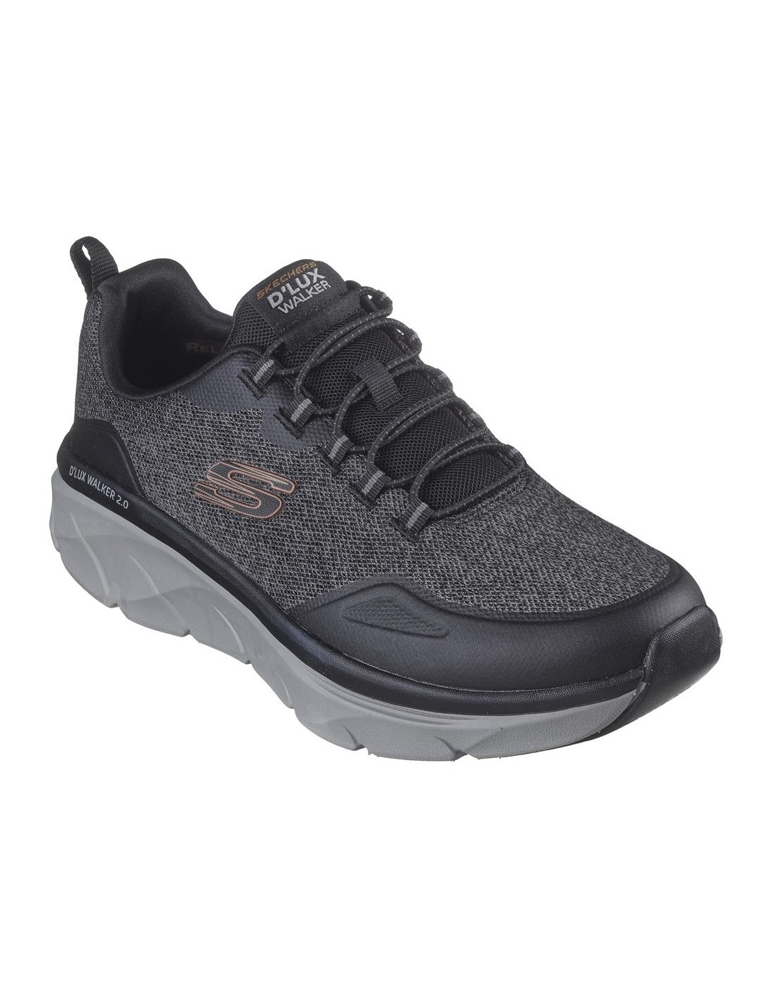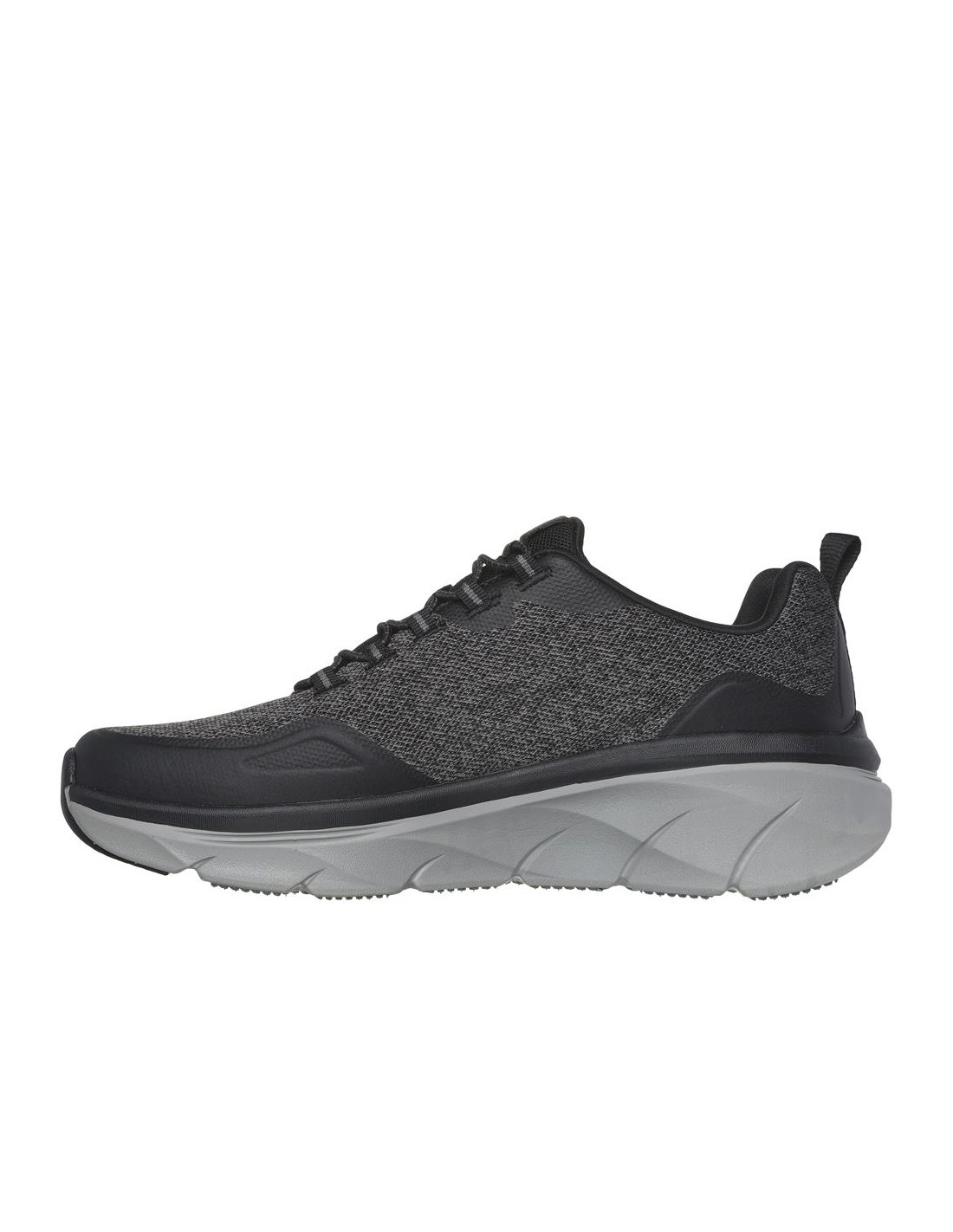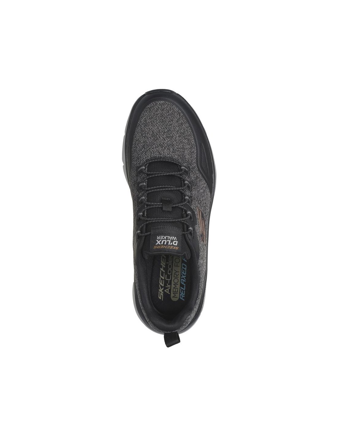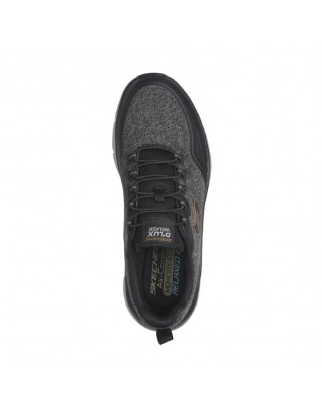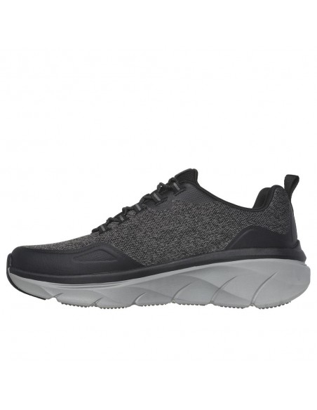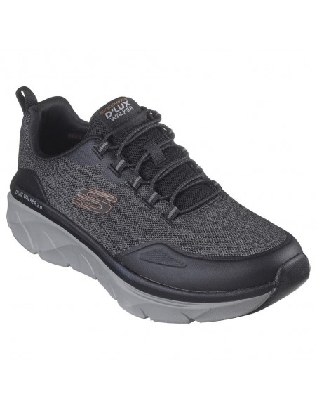 Descripción: Deportivo hombre SKECHERS D'LUX WALKER STEADYWAY de tejido negra con refuerzos. Mejor ajuste con Relaxed Fit®. Plantilla acolchada Air Coled Memory Foam . Cuña D'Lux Walker con media suela amortiguadora.