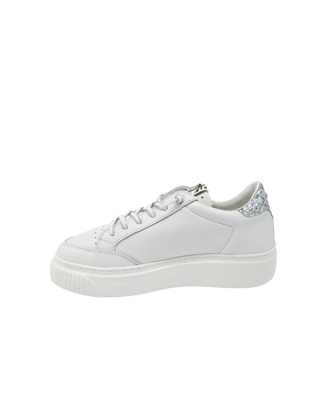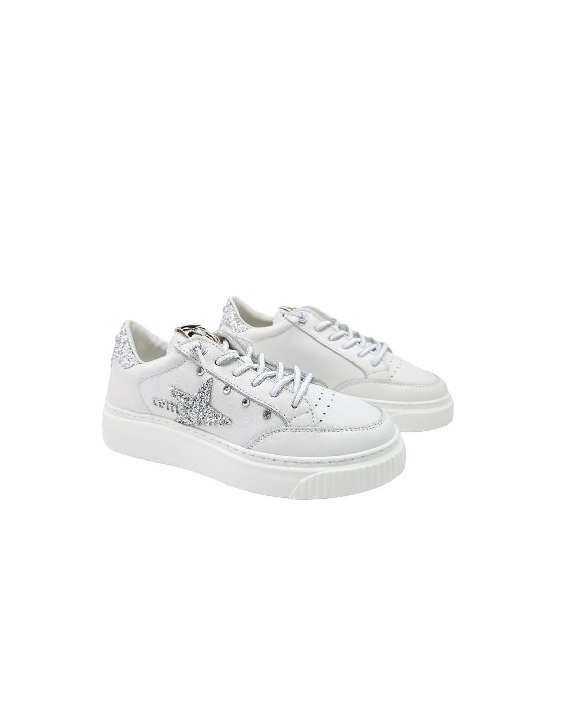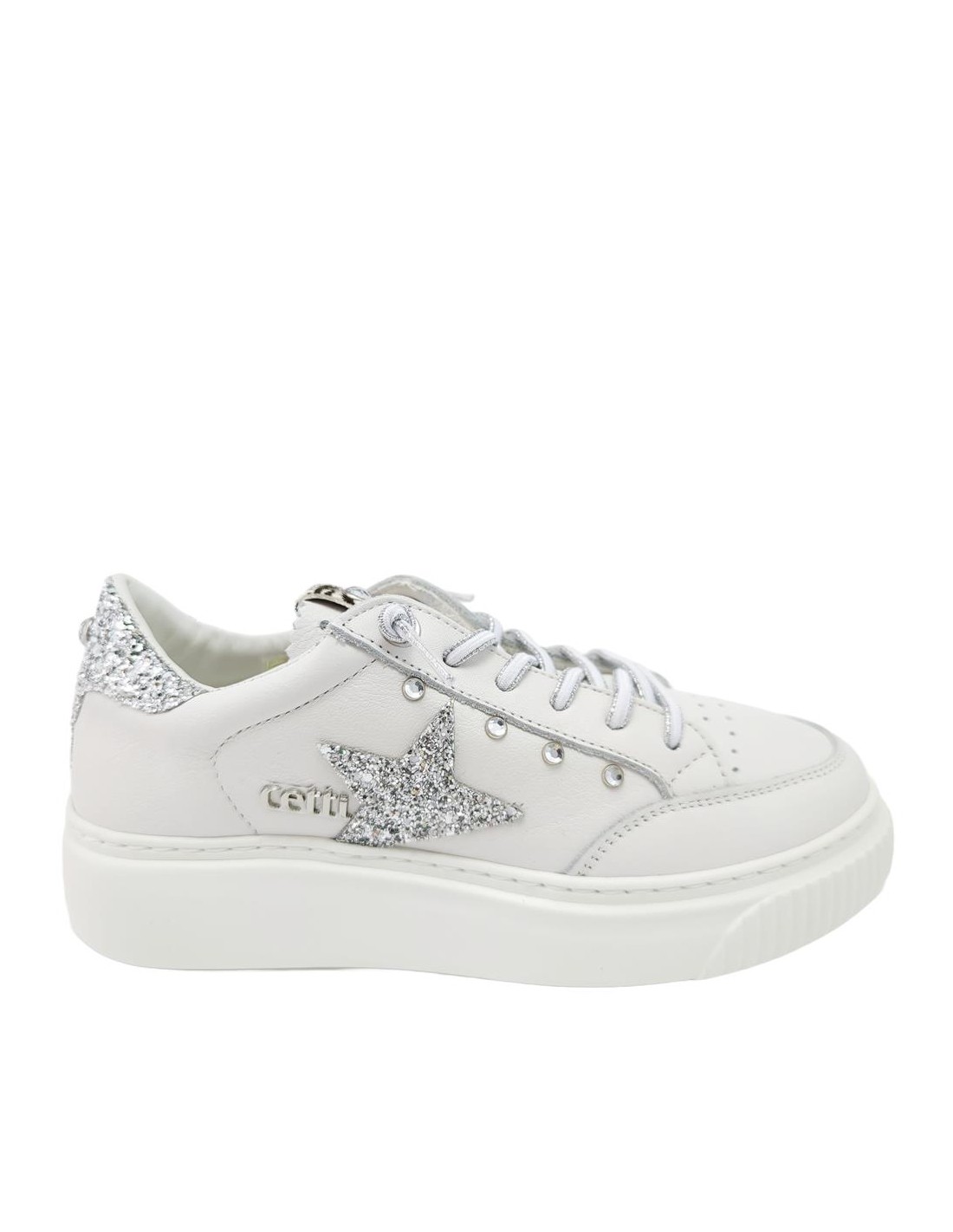 Descripción: Deportiva mujer 1320 de CETTI en piel grabada blanca con detallede tachas y logo estrella en plata. Cordones elásticos. Plantilla extraible acolchada. Cómoda y ligera plataforma.