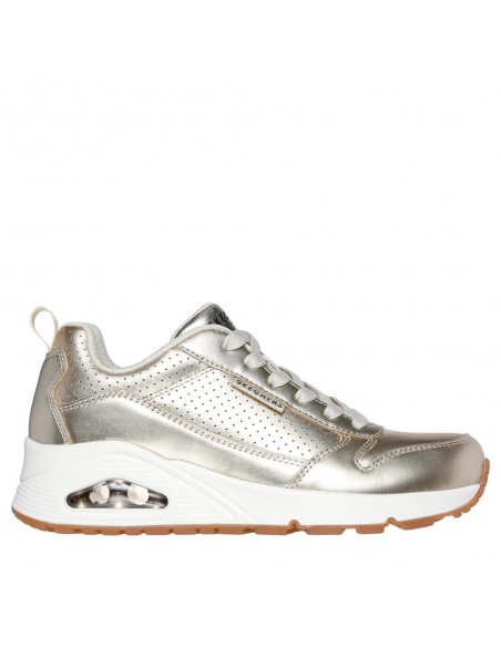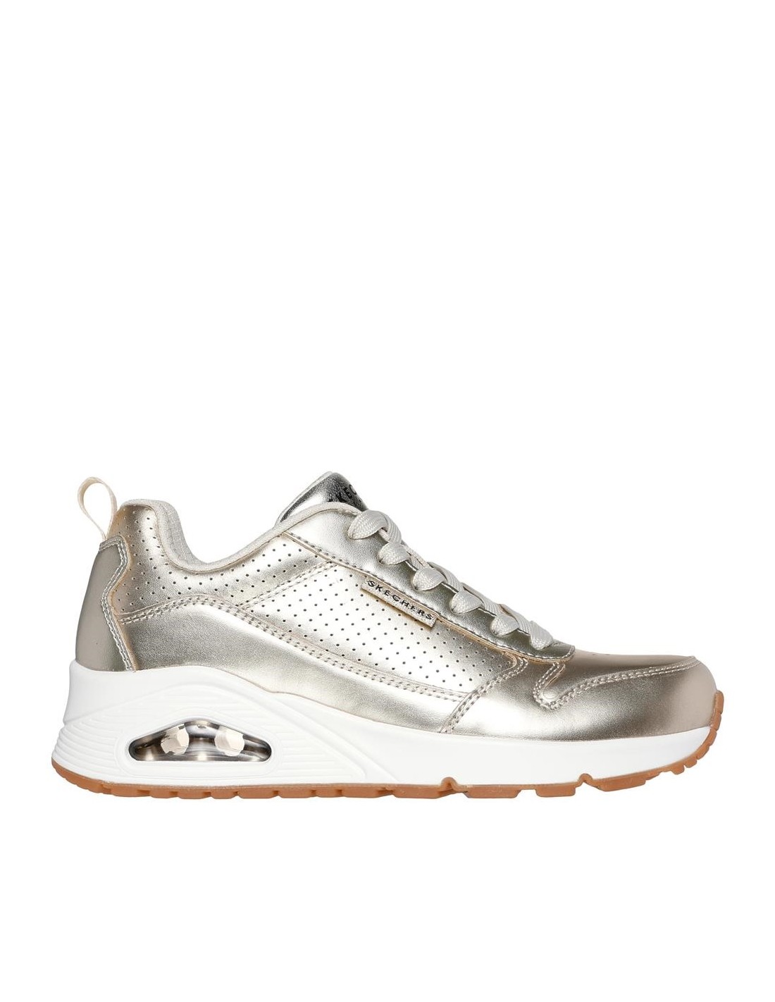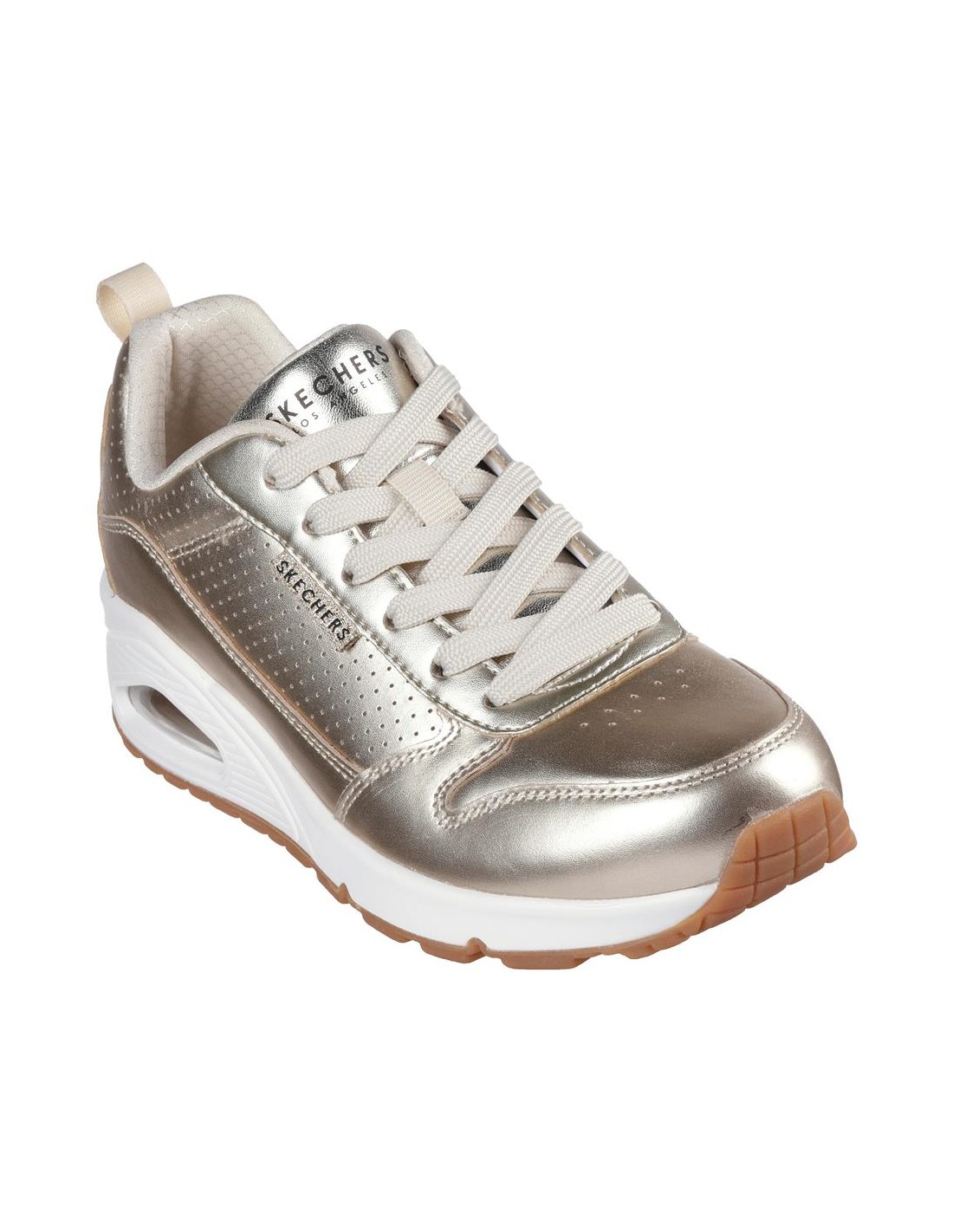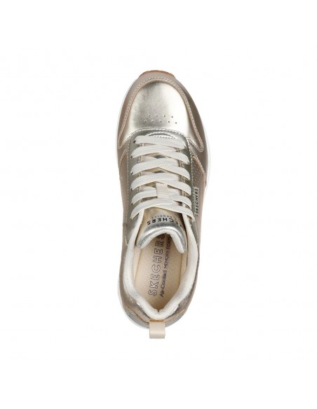 Descripción: Zapatillas urbanas de mujer Skechers UNO AIR METALLIXS con entresuela de aire SKECH-AIR amortiguadora. Tejido platino metalizado de aspecto piel lisa. Plantilla Air Coled Memory Foam. Piso de goma antideslizante.