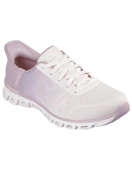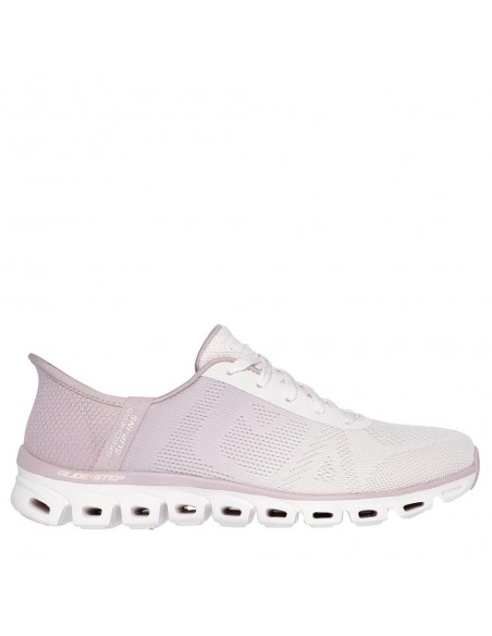 Descripción: Deportiva mujer Skechers slip-ins GLIDE-STEP DASHING EXCIT en malla malva con refuerzos. Plantilla Air Coled Memory-Foam. Sistema Heel Pillow para calzar sin manos Nueva suela flexible, perforada y ligera Glide STEP