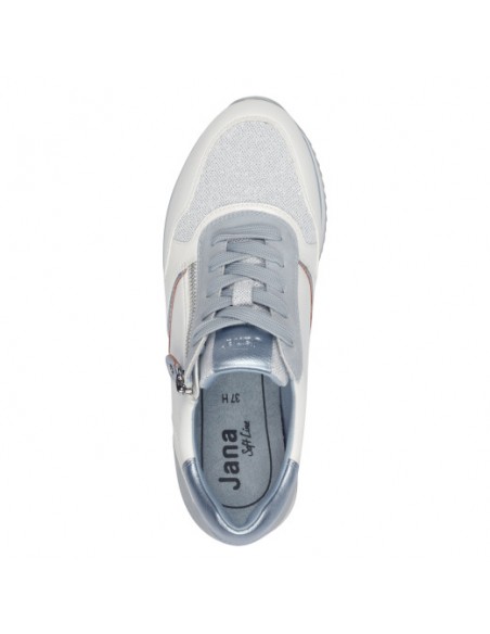 Descripción: Deportiva mujer con CERTIFICADO VEGANO 23774 de Jana en suave tejido en tonos azules y blancos. Ajuste más rápido con cremallera. Plantilla acolchada. Ligera y cómoda cuña flexible y antideslizante.