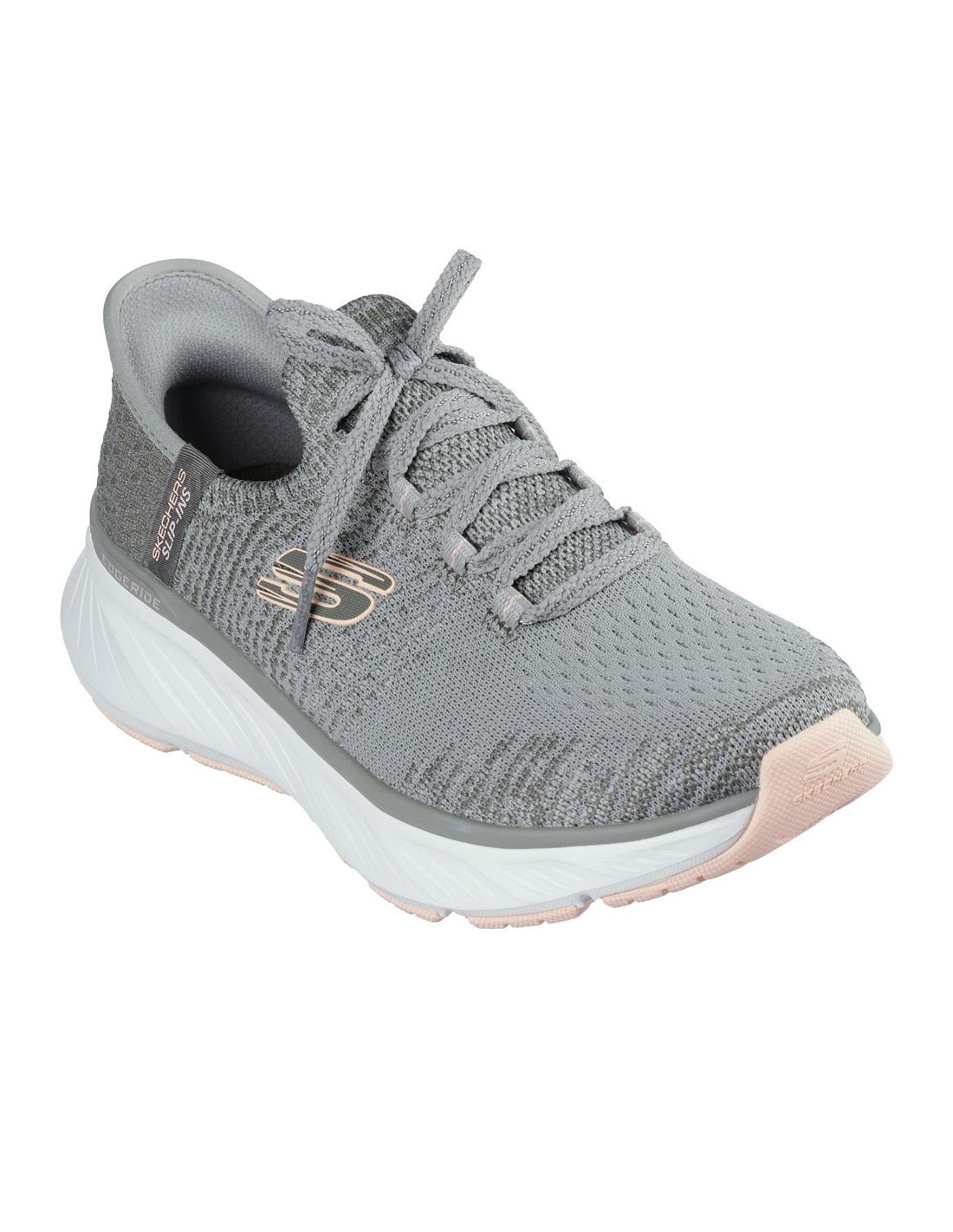 Descripción: Deportiva mujer Skechers SLIP-INS EDGERIDE IMPRESSION de suave y cómodo tejido knit Strech Fit gris. Diseño para calzar sin manos Comfort Pilow. Plantilla amortiguadora Air Coled Memory Foam. Relaxed Fit más espacio interior.