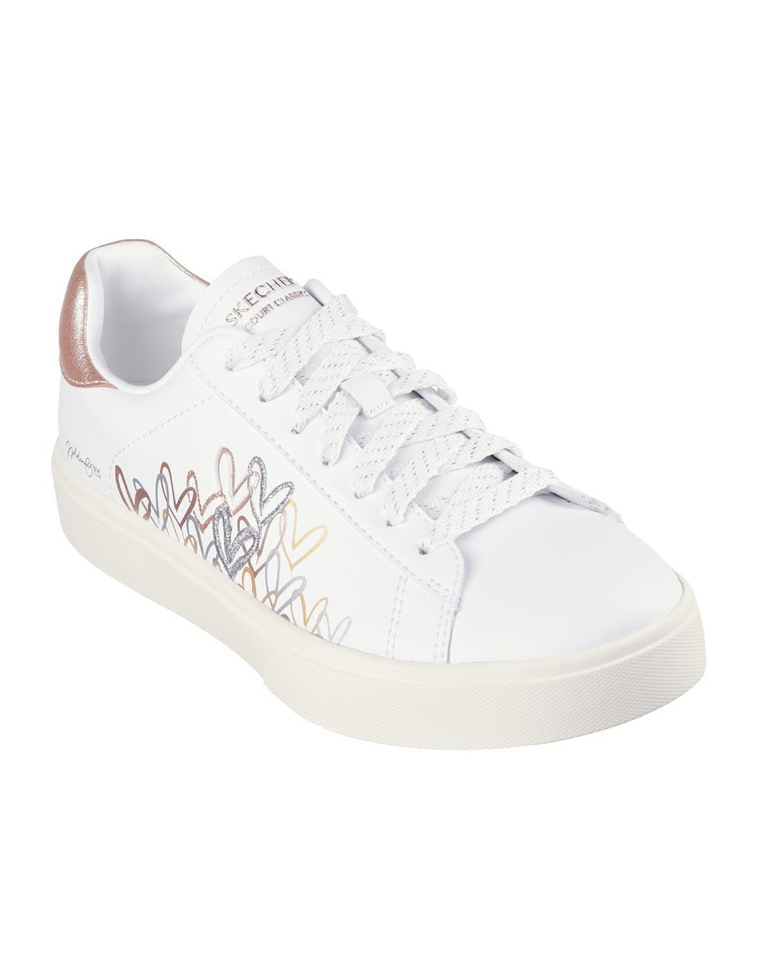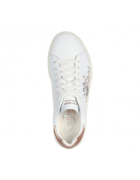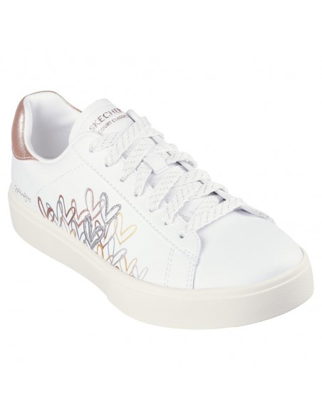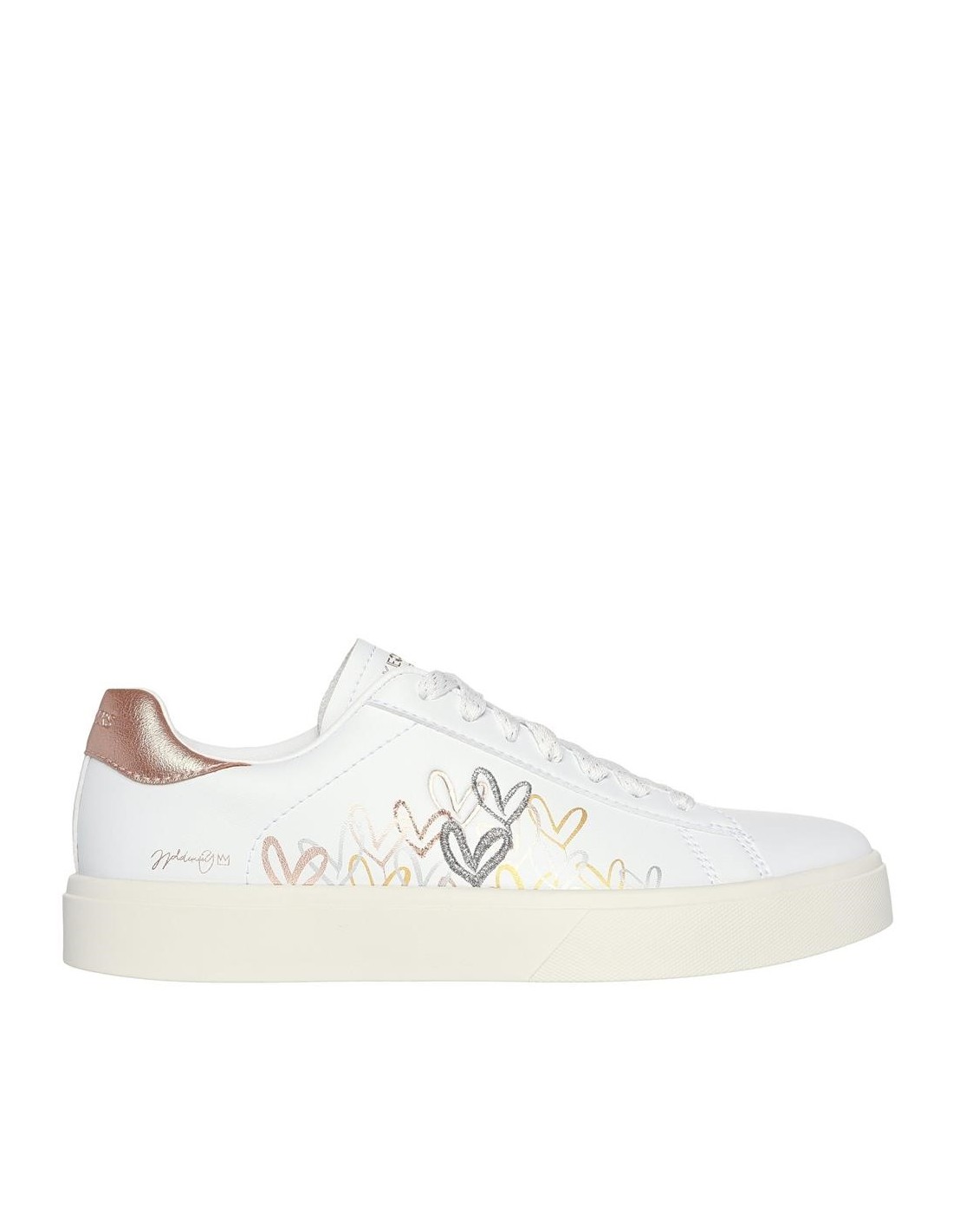 Descripción: Deportiva mujer Skechers JGOLDCROWN EDEN LX GLEAMING blanca con diseños de corazón #Lovewall. Amortiguación con Plantilla Air Coled Memory Foam. Piso de plataforma ligero y antideslizante.