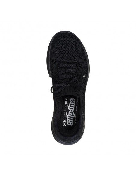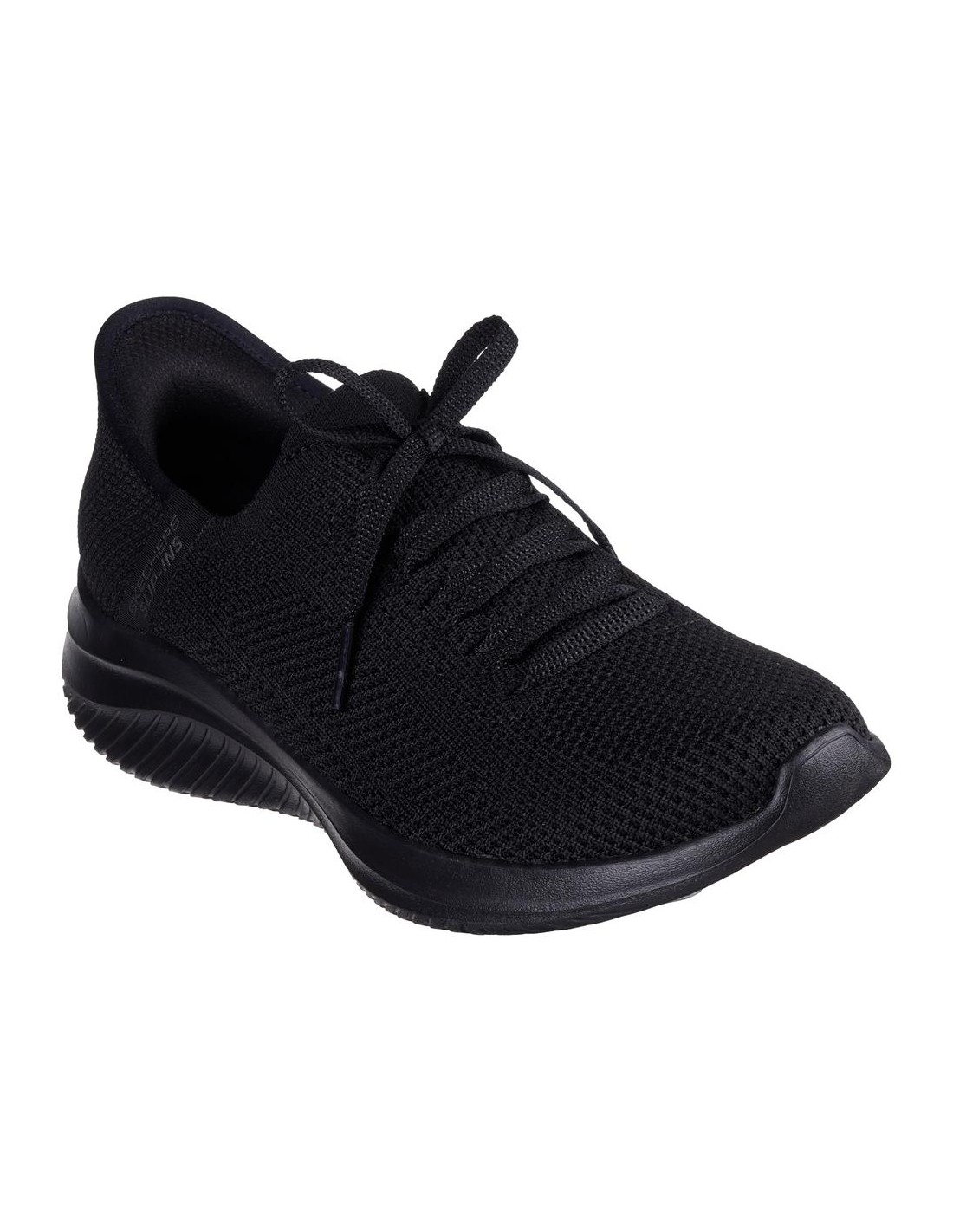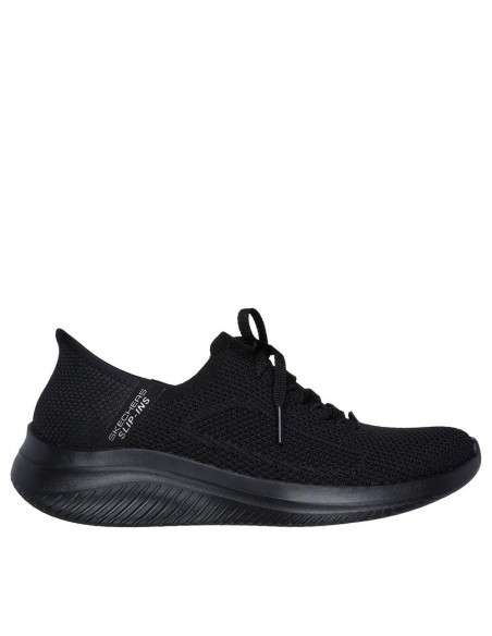 Descripción: Deportiva mujer Skechers SLIP-INS ULTRA FLEX ELEVATED MOTIO de suave y cómodo tejido knit Strech Fit negro. Diseño para calzar sin manos Comfort Pillow en el talón. Plantilla amortiguadora Air Coled Memory Foam.