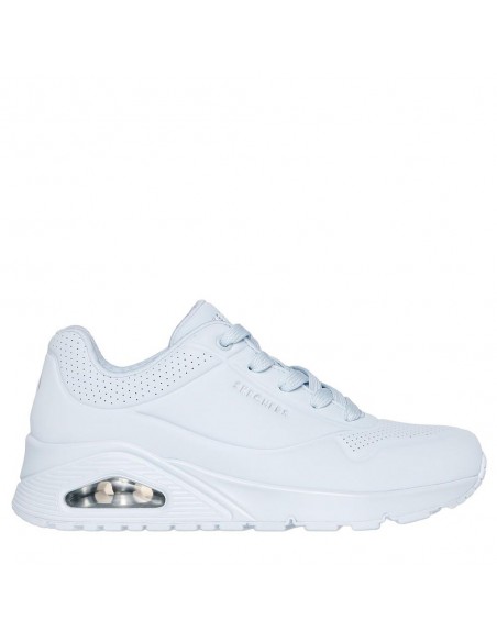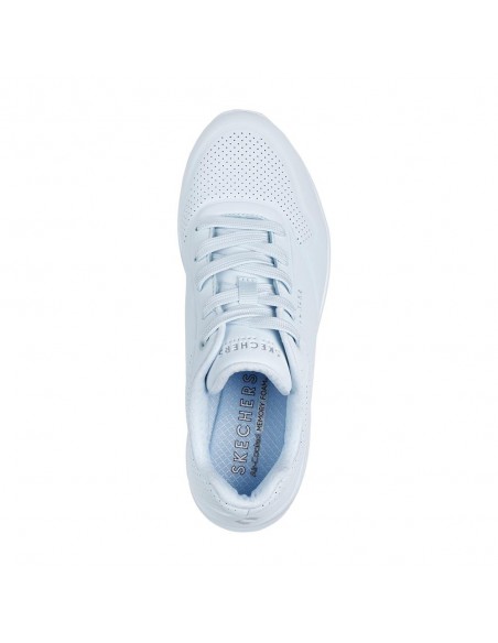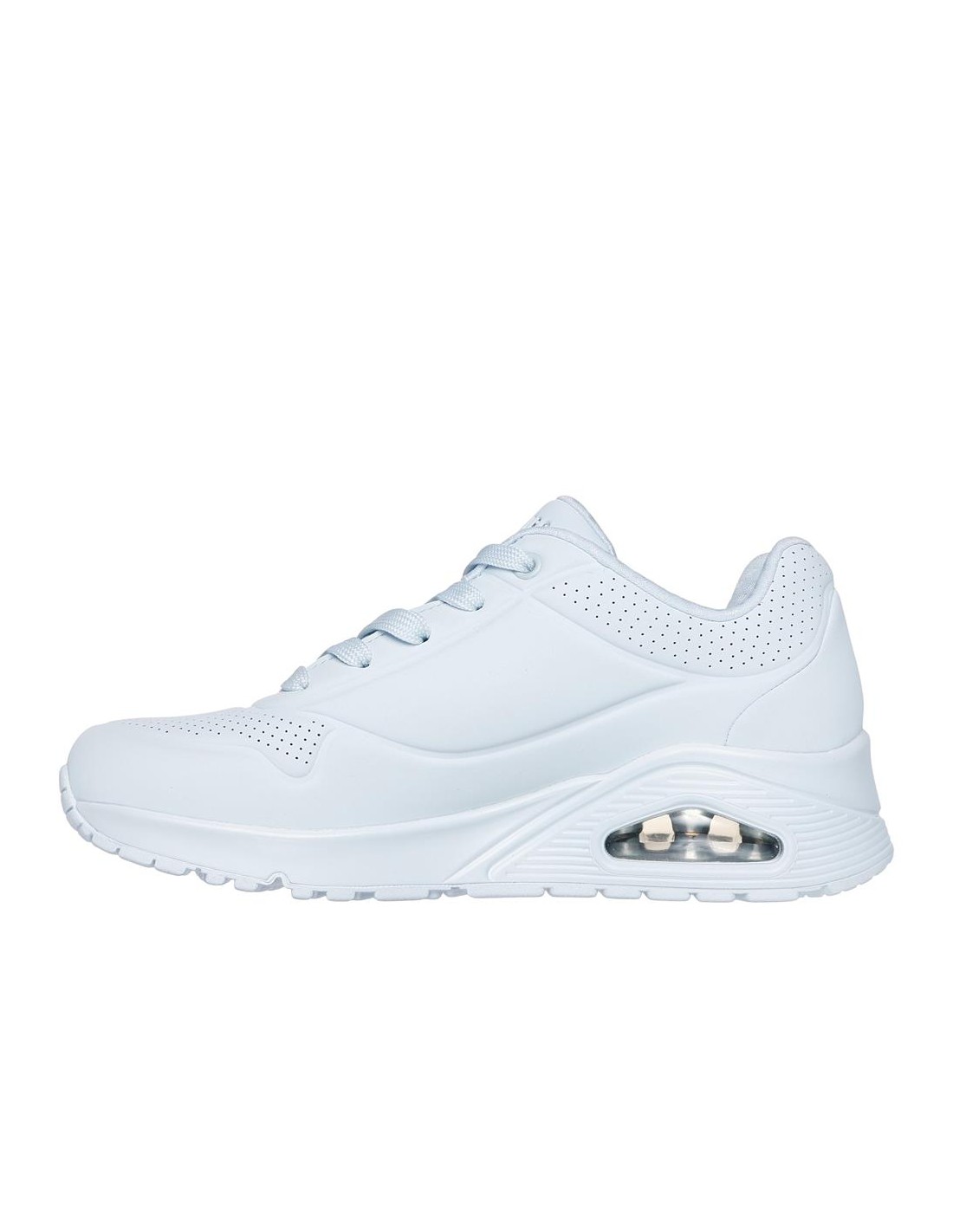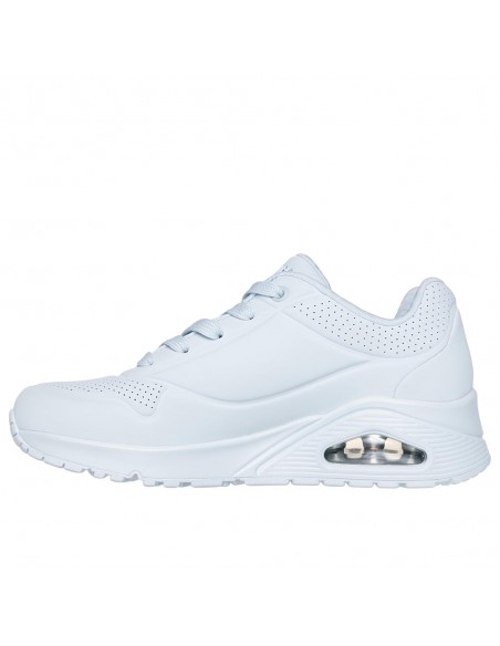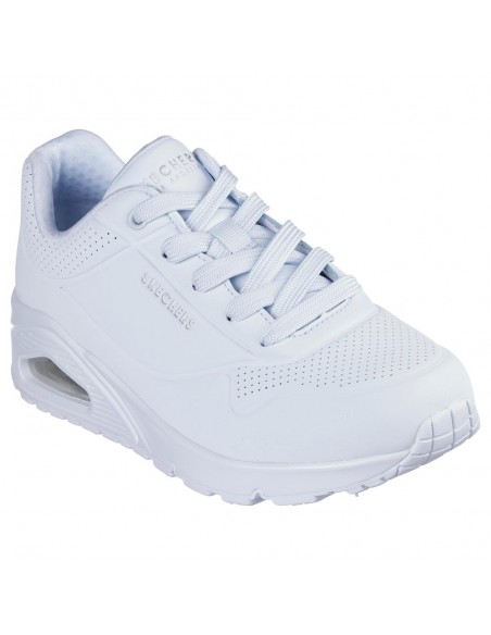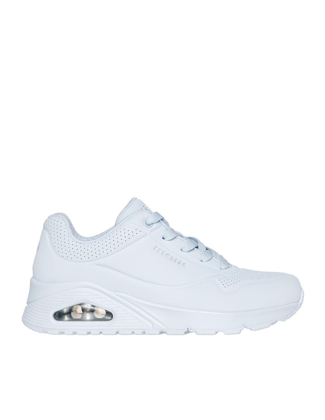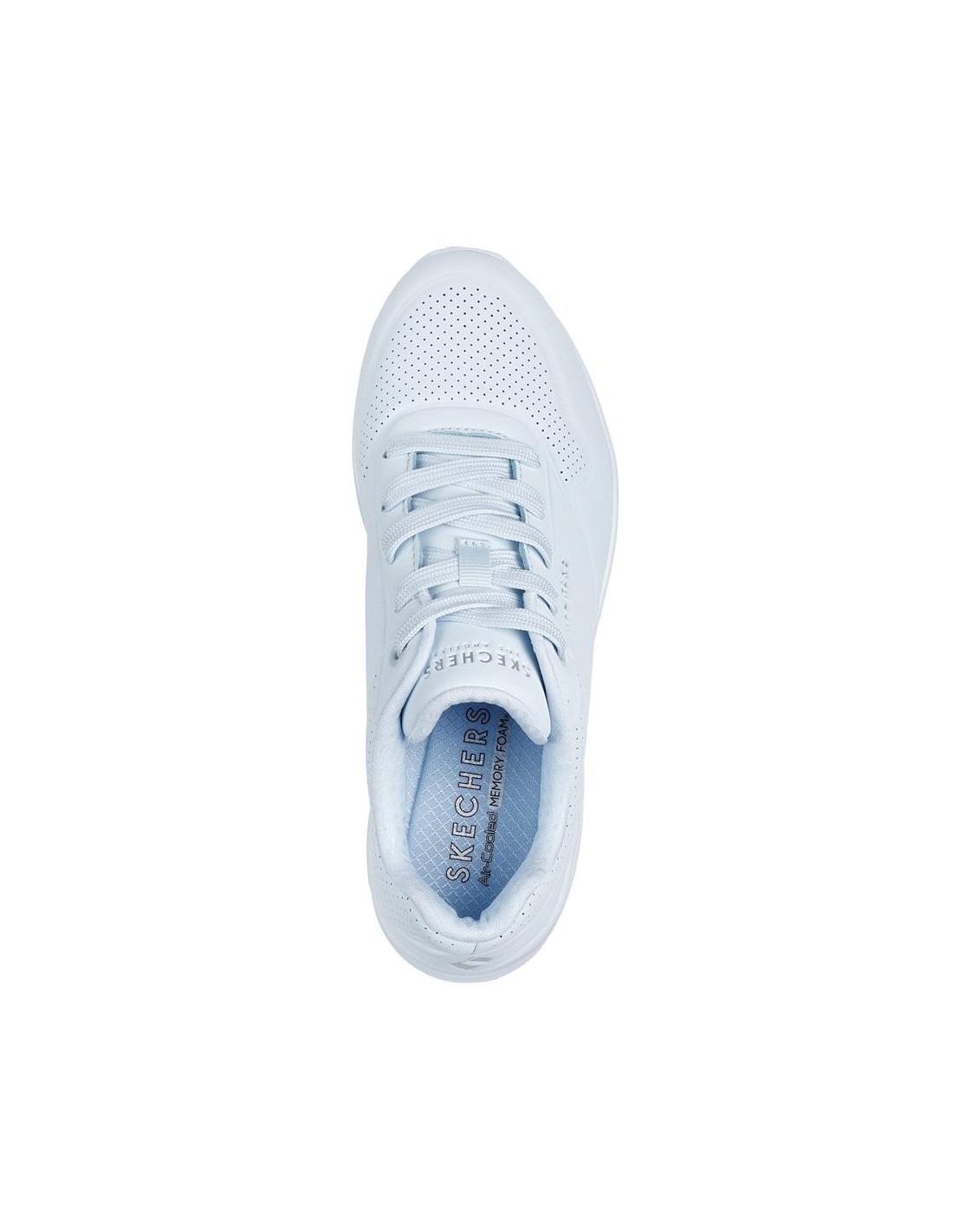 Descripción: Zapatillas urbanas de mujer Skechers UNO STAND ON AIR con entresuela de aire amortiguadora. En suave tejido con textura piel light azul con perforaciones. Piso azul al tono. Plantilla Air Coled Memory Foam.