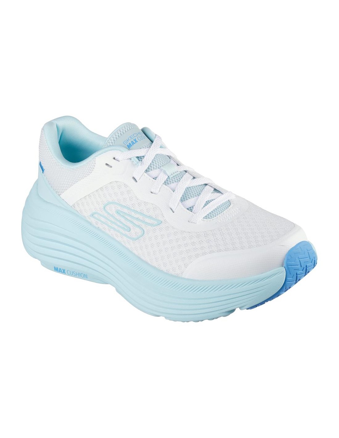 Descripción: Deportiva mujer Skechers MAX CUSHIONING ENDEAVOUR malla blanca con detalles azules. Plantilla Skechers Air-Cooled Goga Mat con cobre infusionado y una media suela ULTRA GO® amortiguadora.