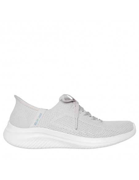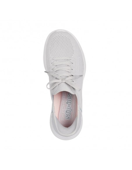 Descripción: Deportiva mujer Skechers SLIP-INS ULTRA FLEX ELEVATED MOTIO de suave y cómodo tejido knit Strech Fit gris. Diseño para calzar sin manos Comfort Pillow en el talón. Plantilla amortiguadora Air Coled Memory Foam