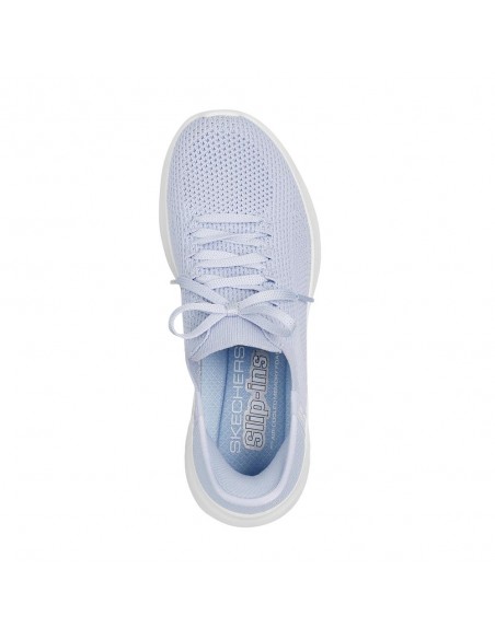 Descripción: Deportiva mujer Skechers SLIP-INS ULTRA FLEX ELEVATED MOTIO de suave y cómodo tejido knit Strech Fit azul. Diseño para calzar sin manos Comfort Pillow en el talón. Plantilla amortiguadora Air Coled Memory Foam.