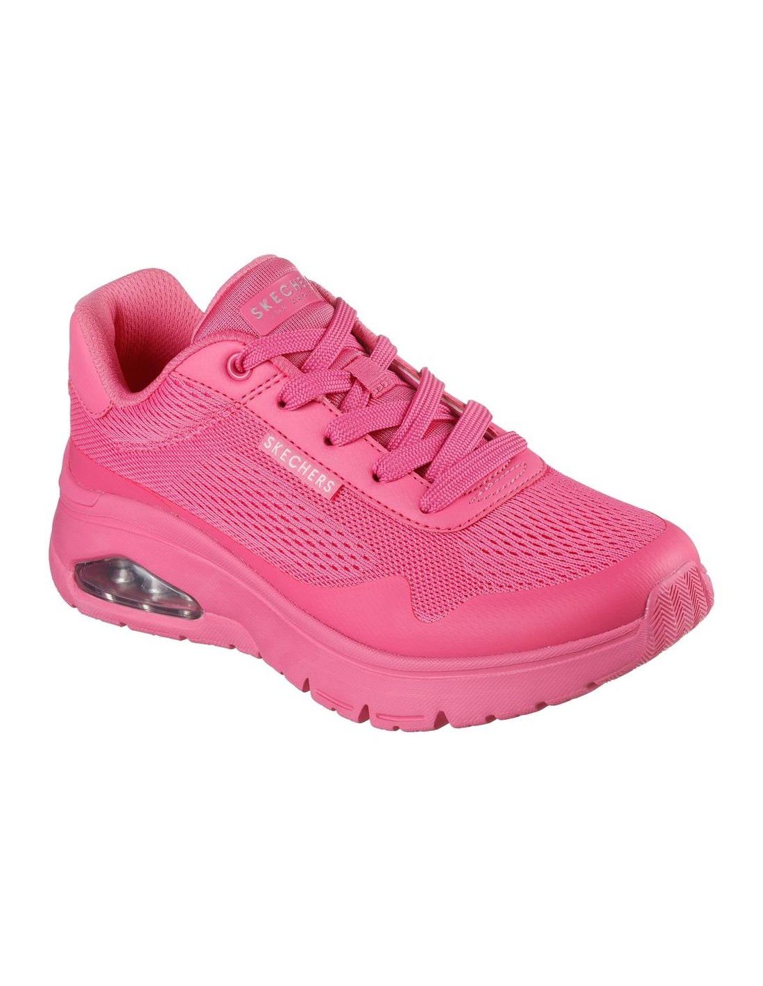 Descripción: Zapatillas urbanas de mujer Skechers UNO AIR FRESH ONE con entre suela de aire SKECH-AIR amortiguadora. Tejido rosa con refuerzos. Plantilla Air Coled Memory Foam. Piso de goma antideslizante.