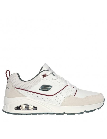 Descripción: Deportiva hombre estilo running clásico Skechers UNO RETRO ONE AIR de suave tejido aspecto piel lisa blanca. Plantilla con tecnología Air Coled Memory Foam acolchada. Suela con cámara de aire visible amortiguadora.