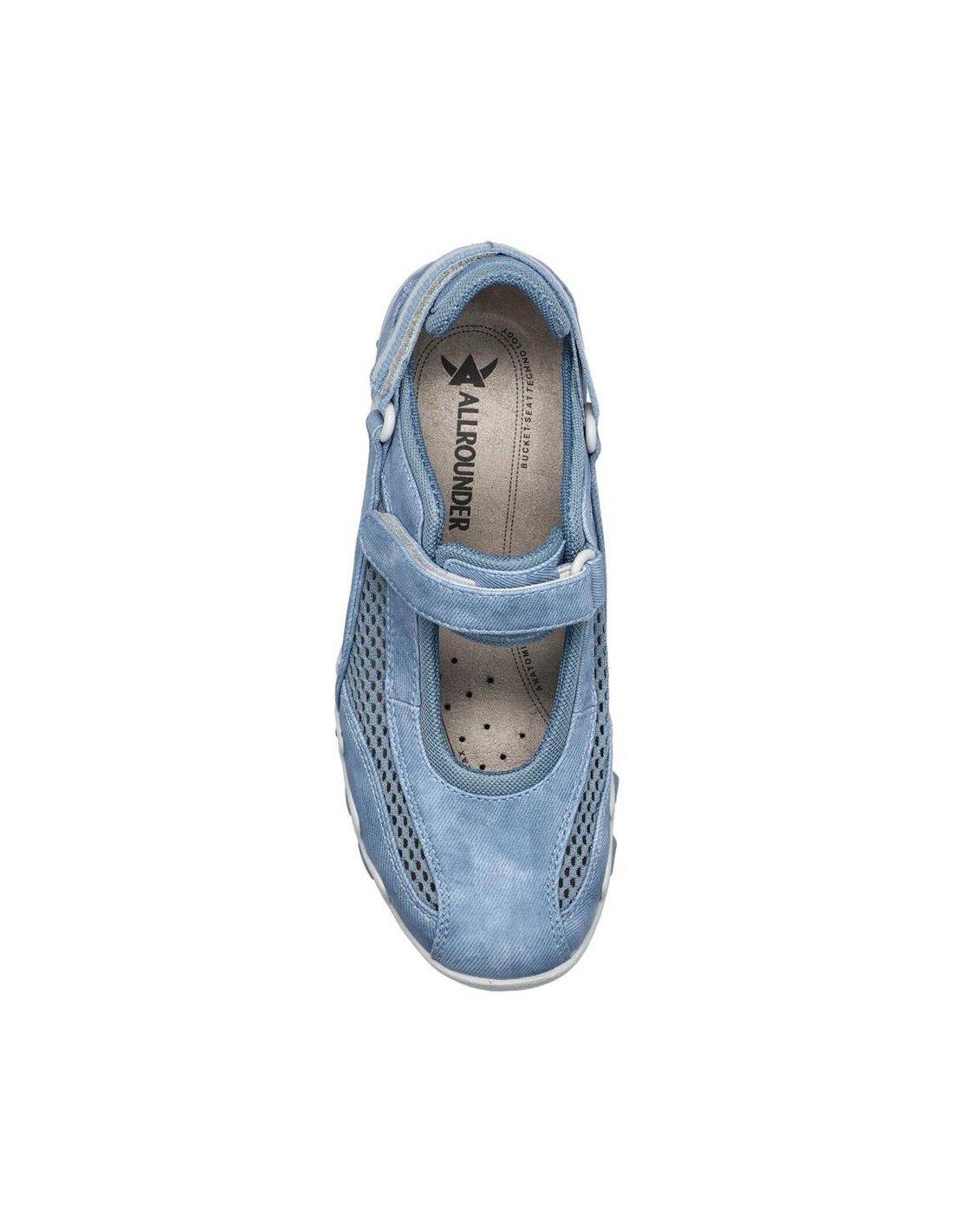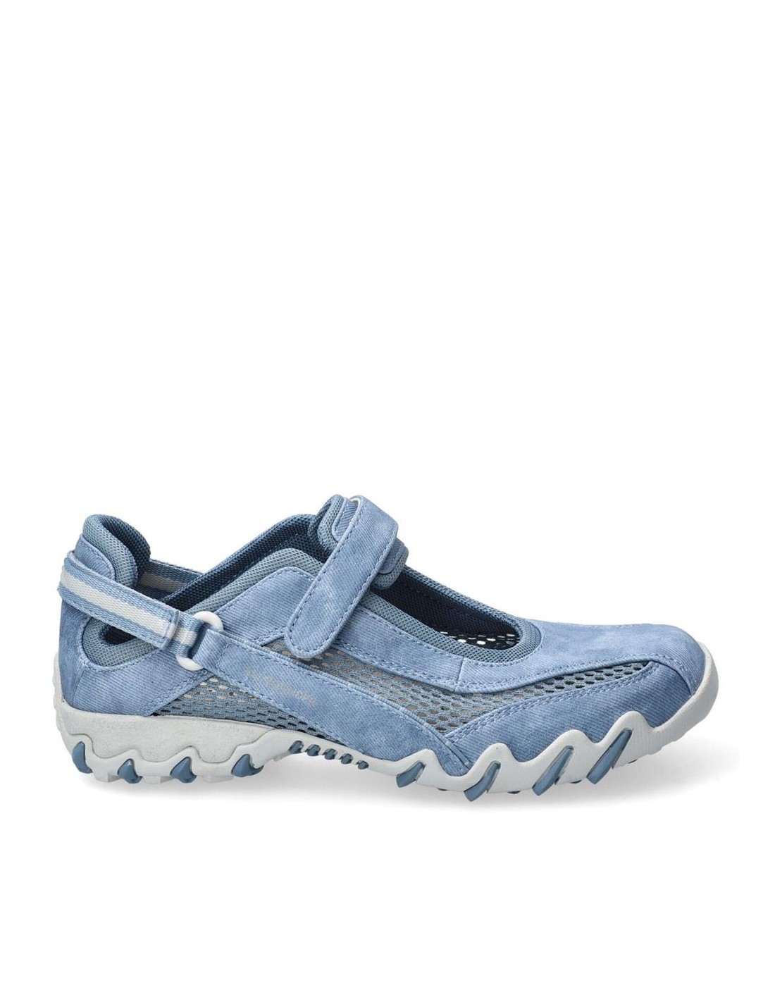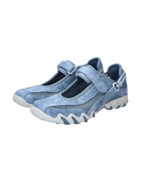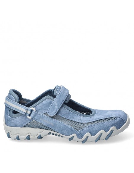 Descripción: Deportiva estilo bailarina NIRO de ALLROUNDER en nubuck azul jeans y rejilla, con ajuste de dos velcros. Plantilla anatómica móvil. Suela con tecnología óptima de amortiguación, flexible y antideslizante.