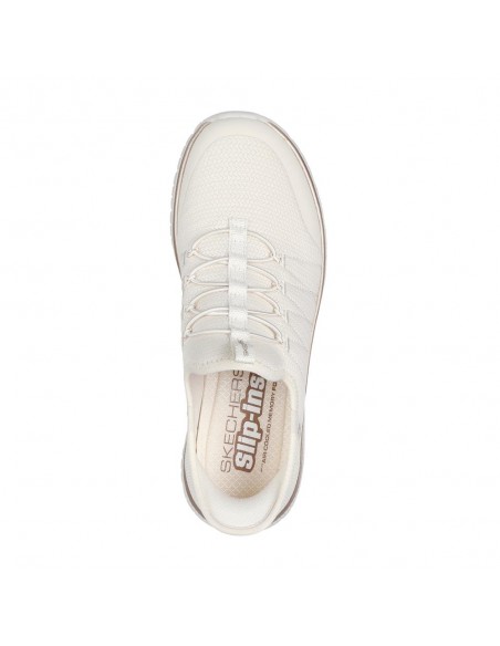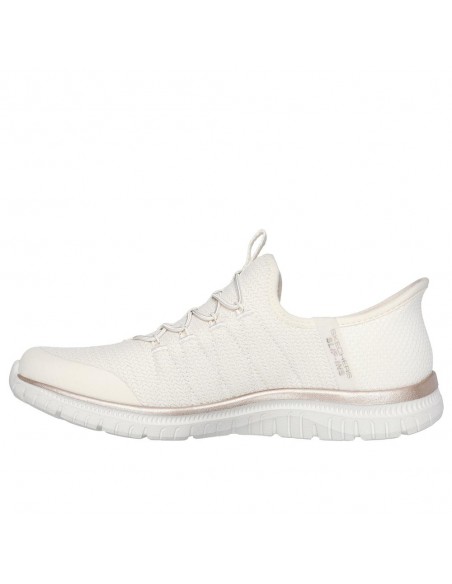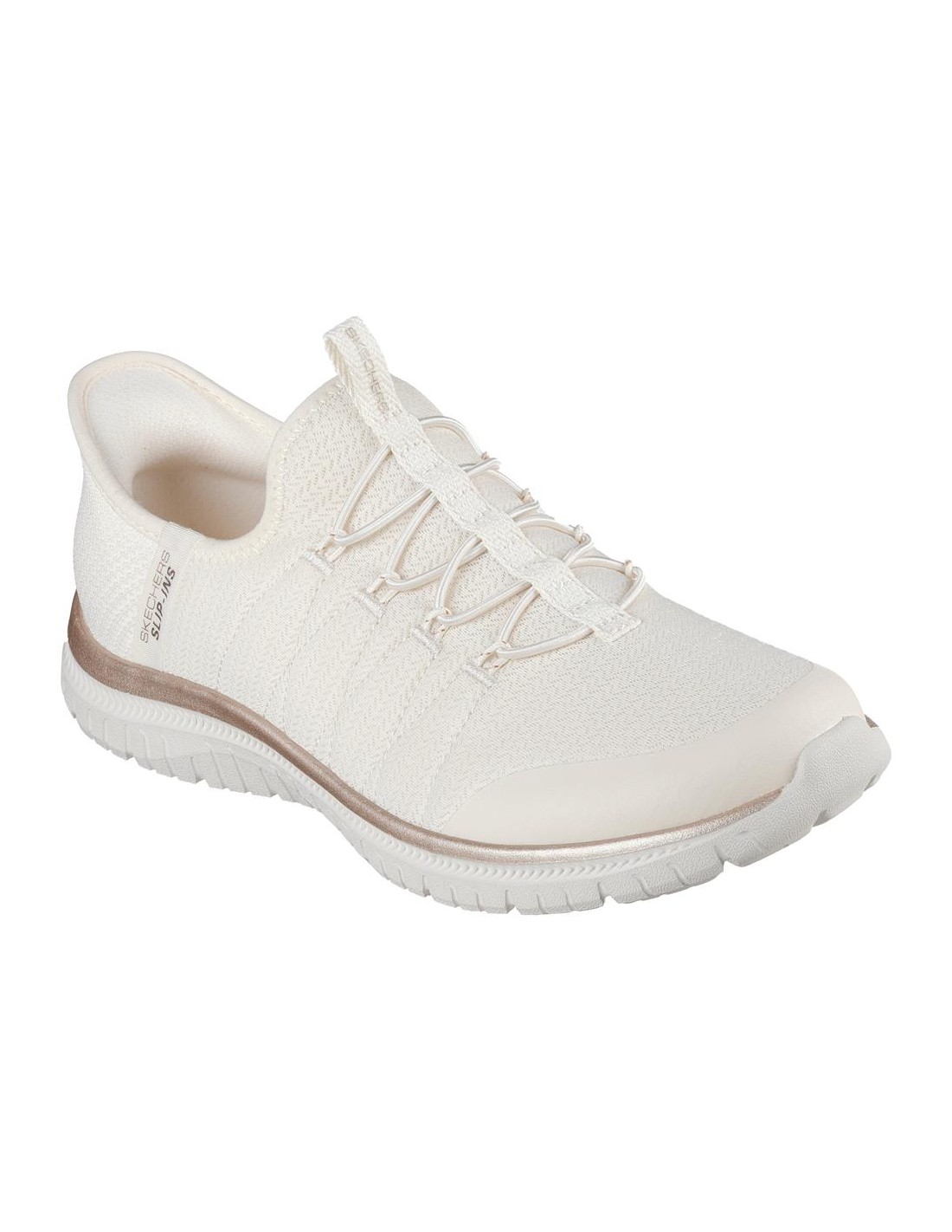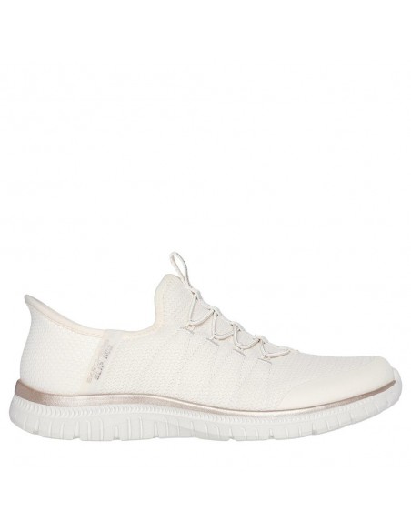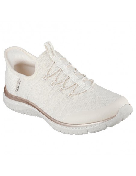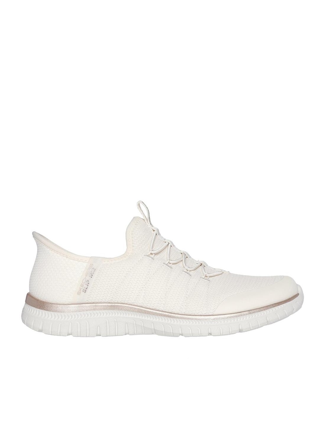 Descripción: Deportiva mujer Skechers SLIP-INS VIRTUE - GLOW beig con cordones elásticos. Talón moldeado Skechers Slip-ins, diseño Heel Pillow para calzar sin manos. Plantilla Air Coled Memory Foam.