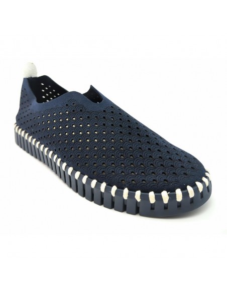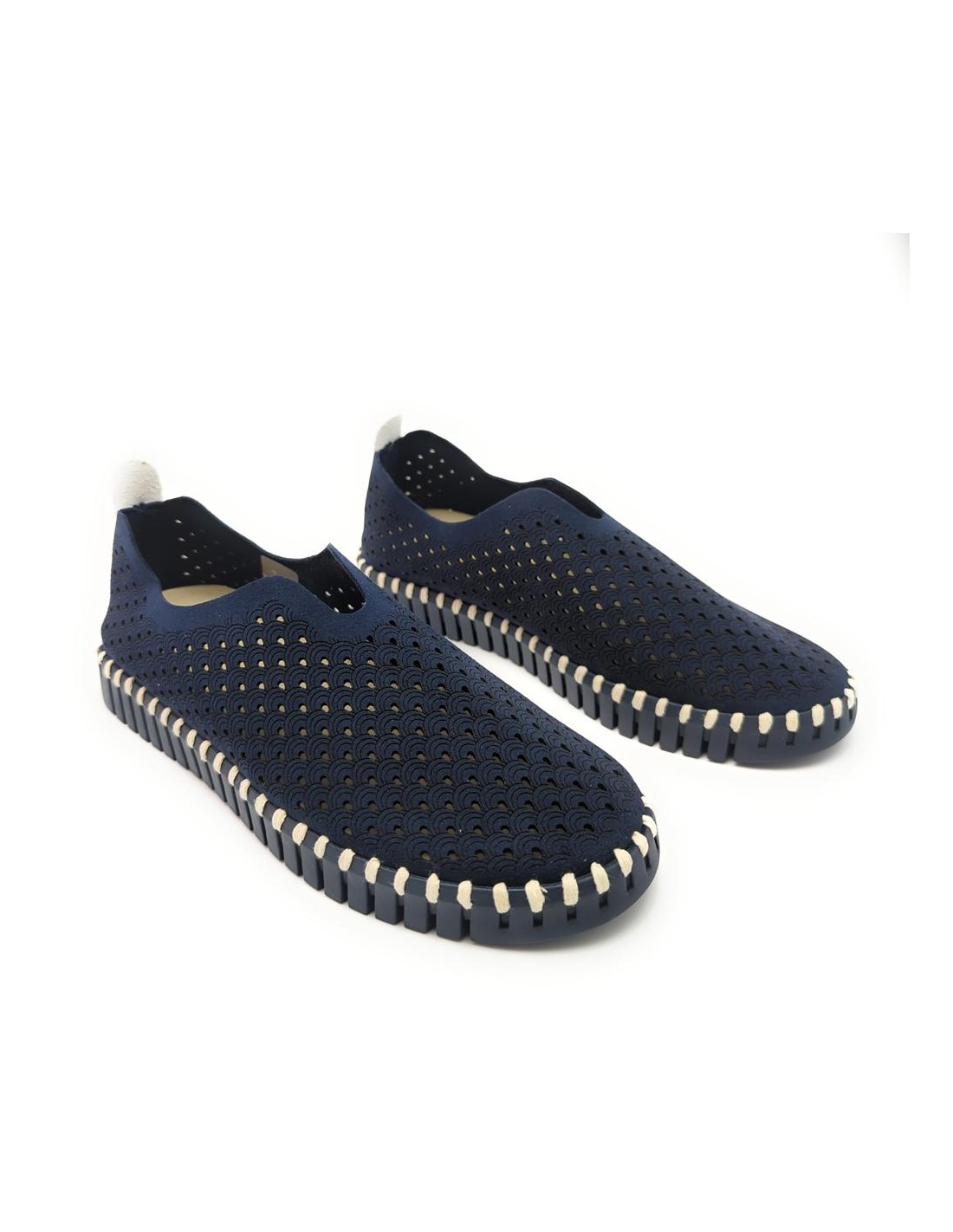 Descripción: Deportiva mujer Ilse JacobsenTULIP 3977 en fresca microfibra reciclada perforada azul. Cómoda y original suela al tono flexible de caucho natural cosida a la microfibra, sin pegamento.