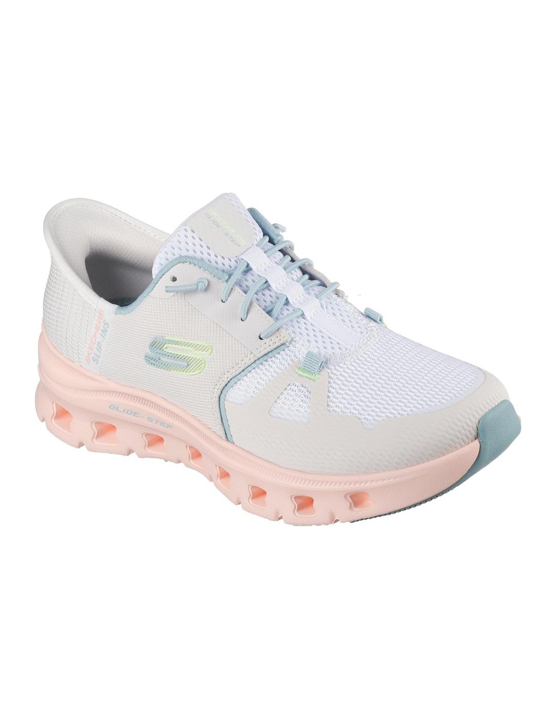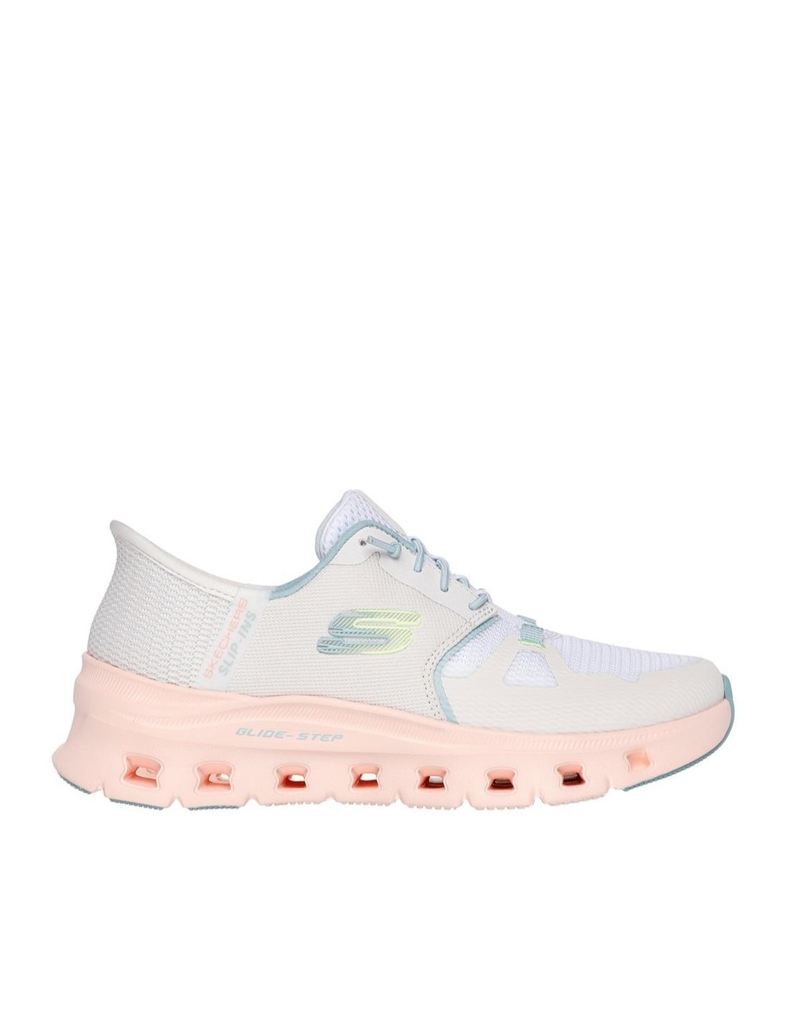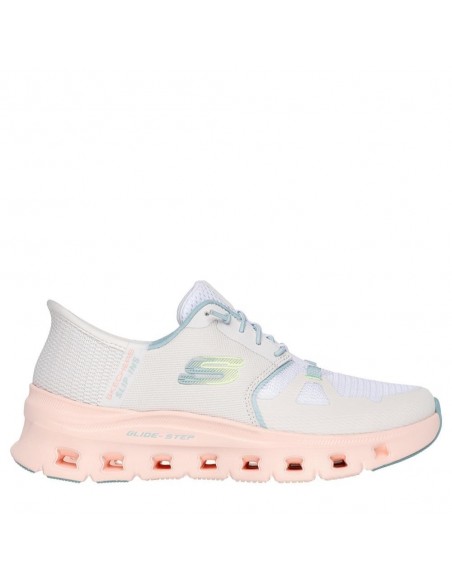 Descripción: Deportiva mujer Skechers SLIP-INS GLIDE-STEP® PRO de suave y cómodo tejido blanco con refuerzos taupes. Diseño para calzar sin manos Heel Pillow Plantilla Air Coled Memory Foam. Amortiguación Glide-Step