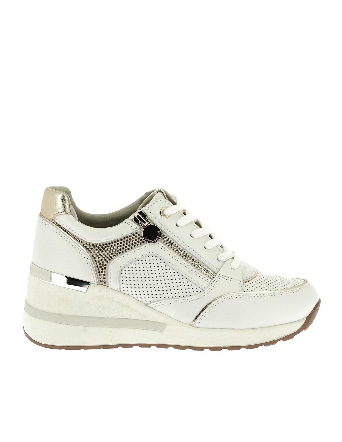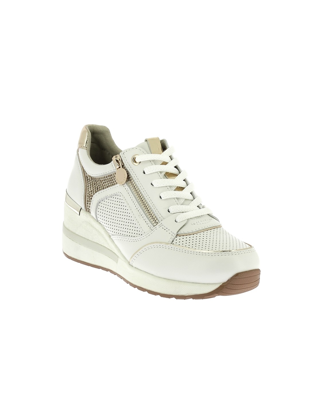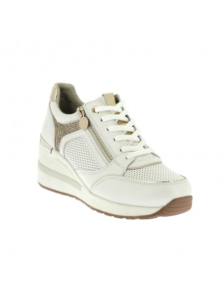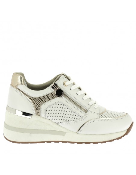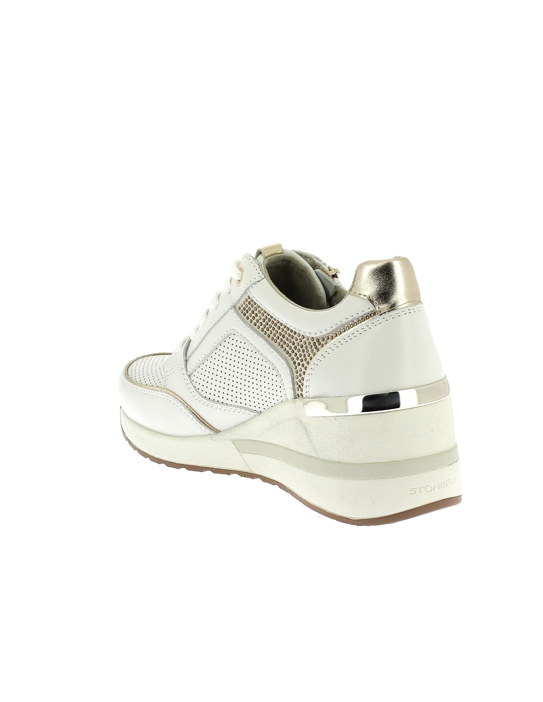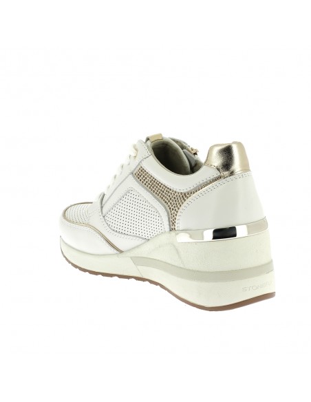 Descripción: Cómoda y elegante deportiva mujer de Stonefly MINA-1 en suave piel perforada blanca con detalles metalizados. Ligera cuña con tecnología BLUSOFT que garantiza una amortiguación perfecta.