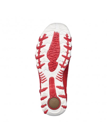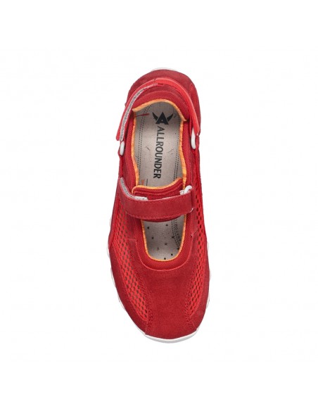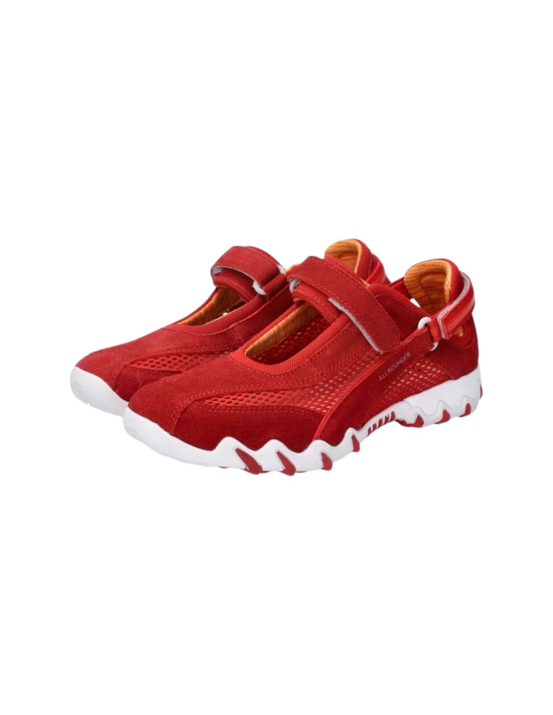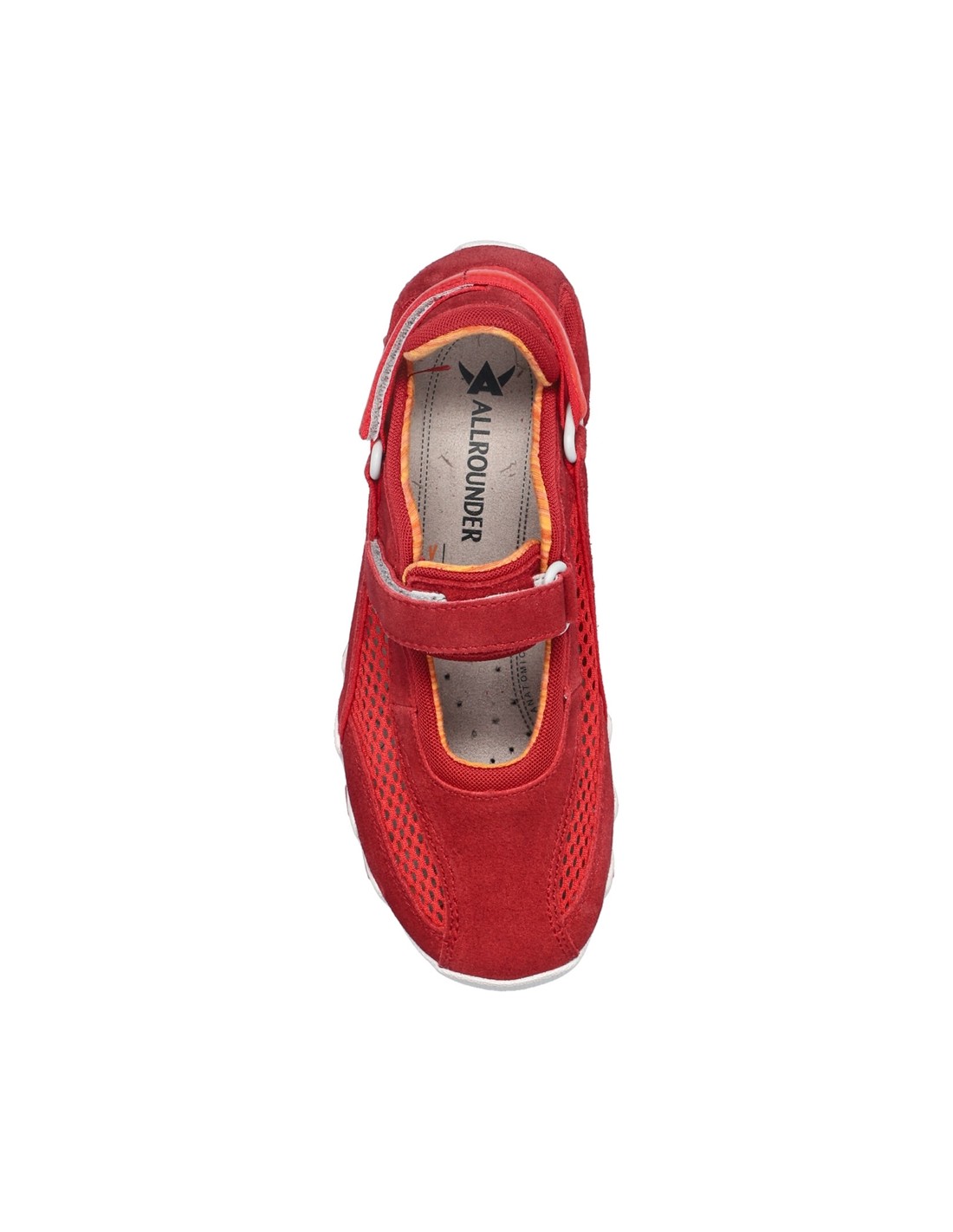 Descripción: Deportiva estilo bailarina NIRO de ALLROUNDER en nubuck rojo y rejilla, con ajuste de dos velcros. Plantilla anatómica móvil. Suela con tecnología óptima de amortiguación, flexible y antideslizante.