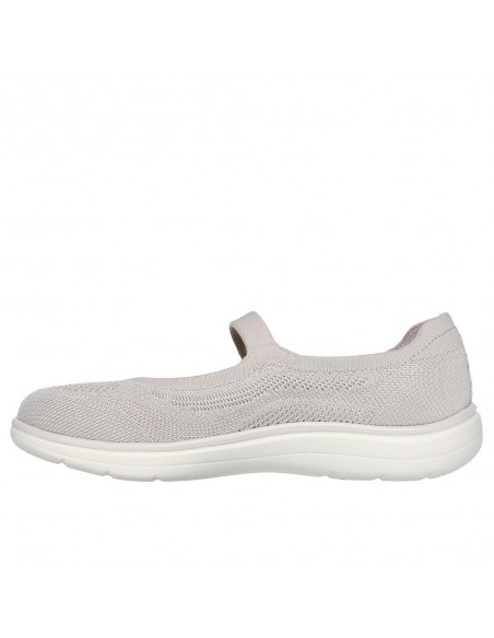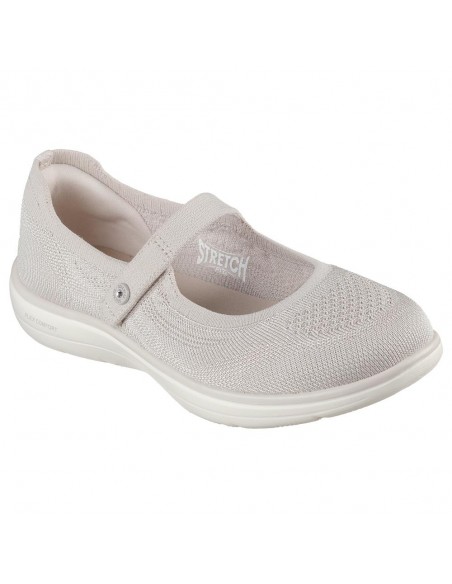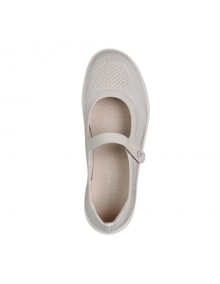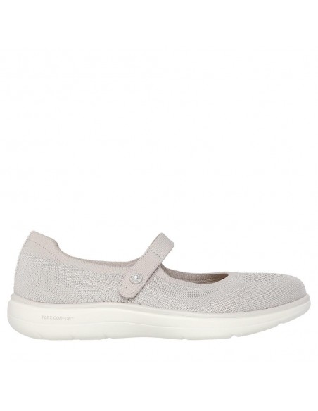 Descripción: Bailarina sport mujer SKECHERS ON THE GO FLEX RADIA de suave tejido beig. Ajuste banda con velcro. Planta Skechers Air Coled Memory Foam . Acolchado ULTRA GO® ligero y amortiguador