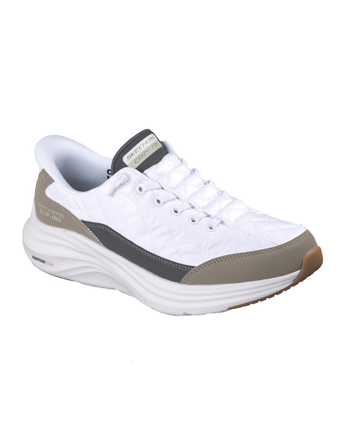 Descripción: Zapatilla hombre Skechers Hands Free Slip-ins® CONTOUR FOAM COZY tejido acolchado Cozy Fit blanco. Cómoda plantilla de Air Coled Memory Foam amortiguadora. Talón Heel Pillow para calzar sin manos.
