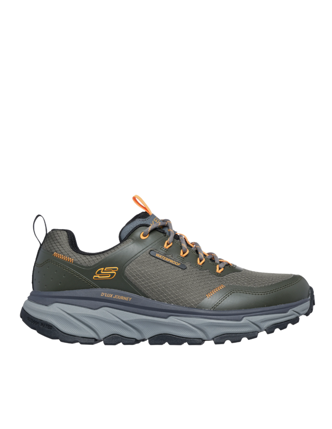 Descripción: Zapatilla hombre Skechers D'LUX JOURNEY SLATE PEAK en malla kaki con refuerzos y membrana waterproof. Relaxed Fit® ajuste más amplio y cómodo. Plantilla de Air Coled Memory Foam