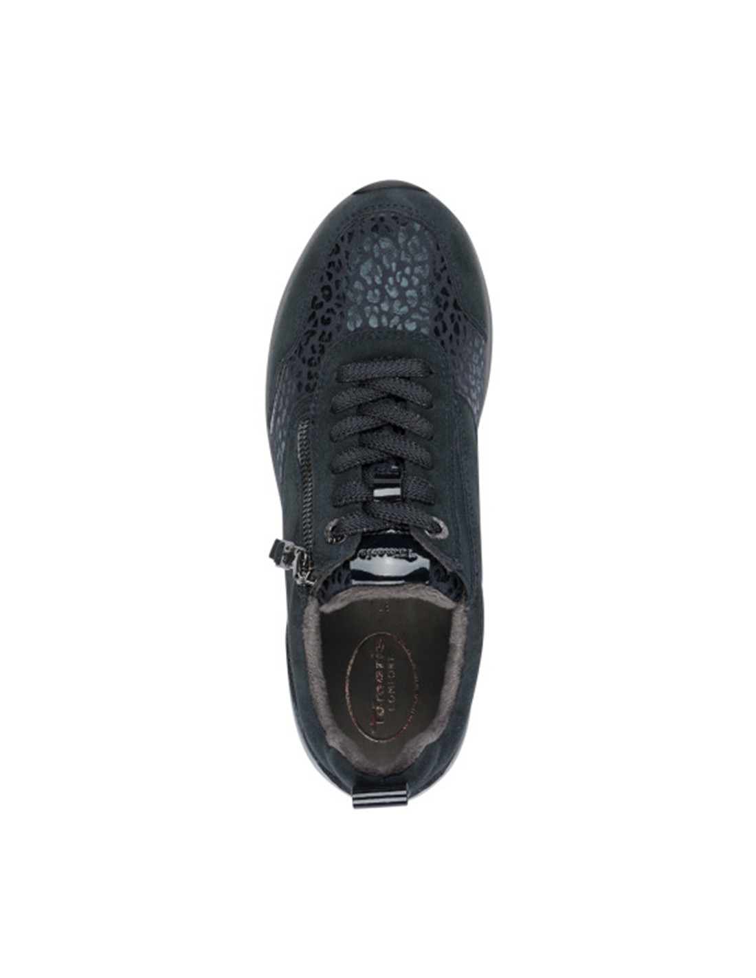 Descripción: Zapatilla mujer 83714 de TAMARIS CONFORT en nubuck y licra adaptable azul. Plantilla anatómica extraible. Ajuste cremallera y cordones. Cómodo piso con tecnología TFlow amortiguadora