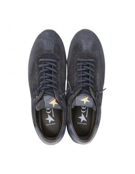 Descripción: Zapatilla hombre 1381 de CETTI en suave ante azul marino y detalle piel metalizada. Cordones elásticos. Plantilla acolchada extraible. Cómodo cuña envejecida con piso antideslizante.
