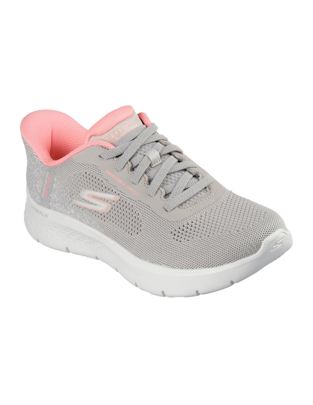 Descripción: Zapatilla mujer Skechers Hands Free Slip-ins GO WALK JOY FLEX malla Stretch Fit® taupe. Diseño talón Comfort Pillow para calzar sin manos Entresuela 5GEN y Plantilla GOGA MAT amortiguadoras.