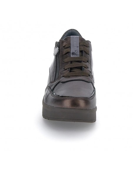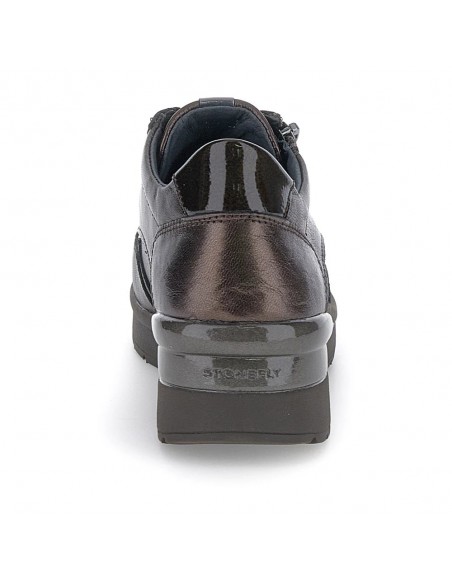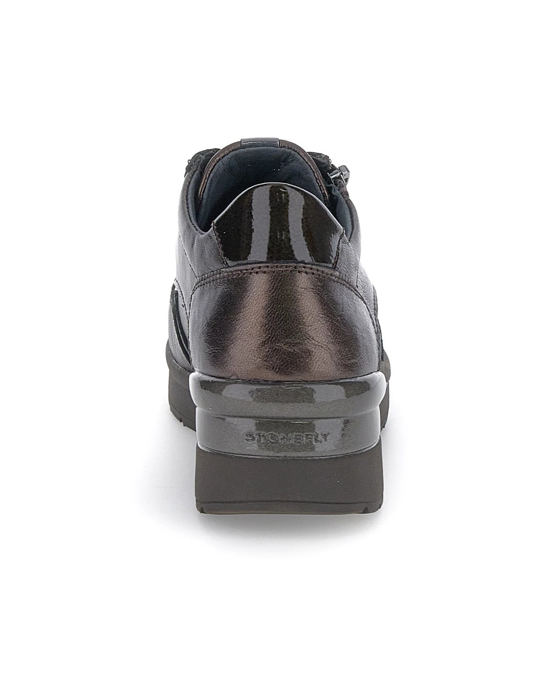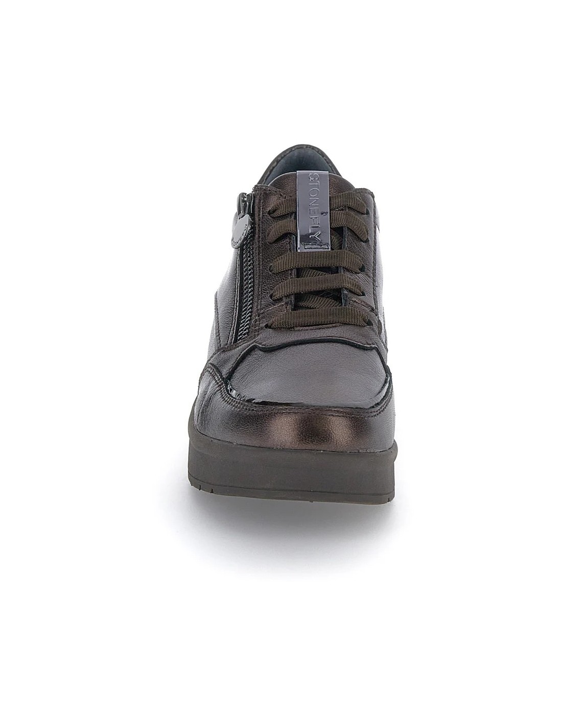 Descripción: Cómoda y elegante zapatilla mujer de Stonefly CREAM-58 en suave piel metalizada marrón. Ajuste con cremallera. Ligera cuña con tecnología BLUSOFT que garantiza una amortiguación perfecta.