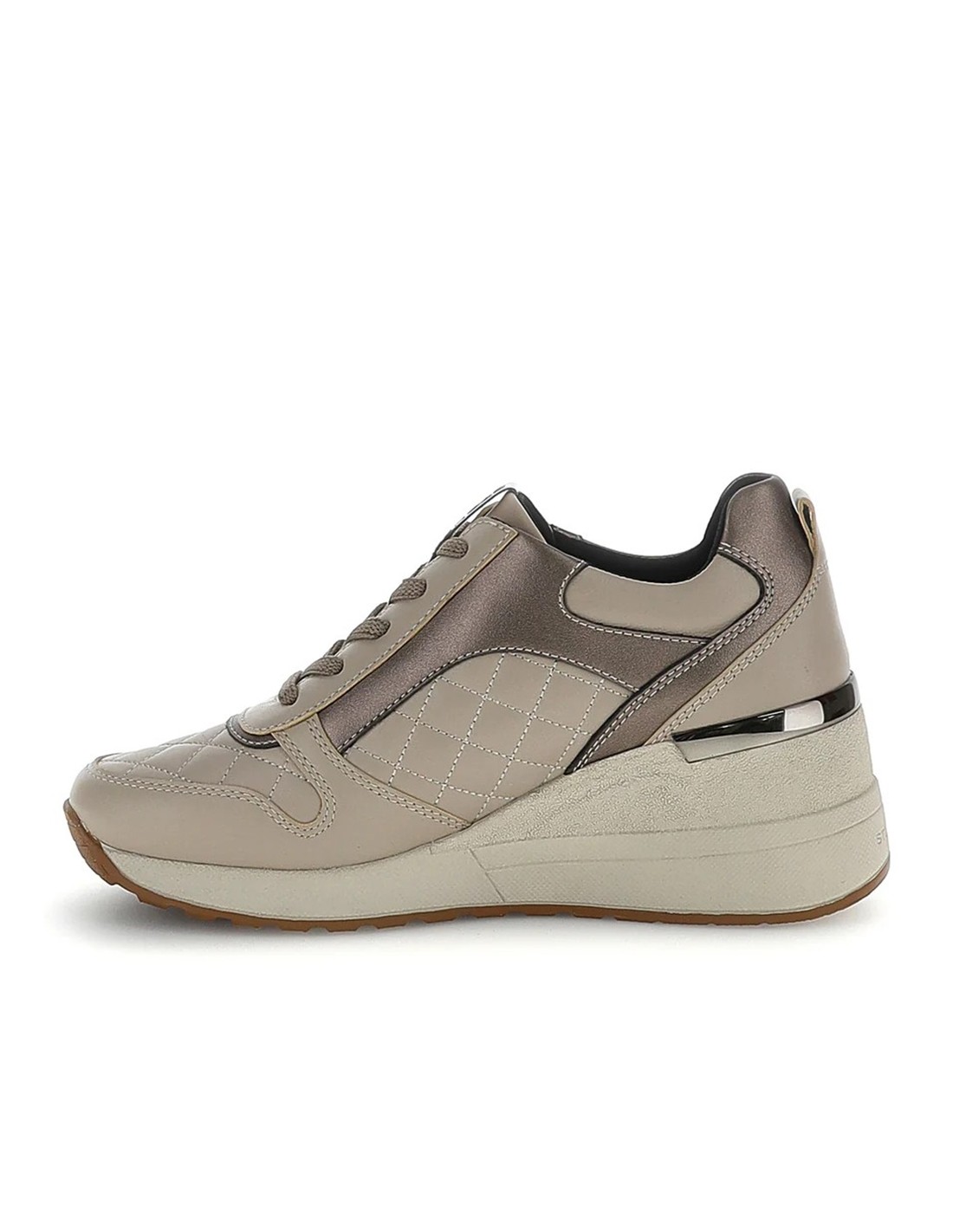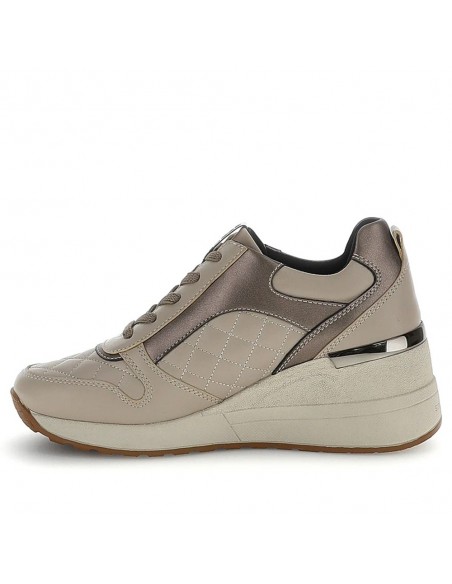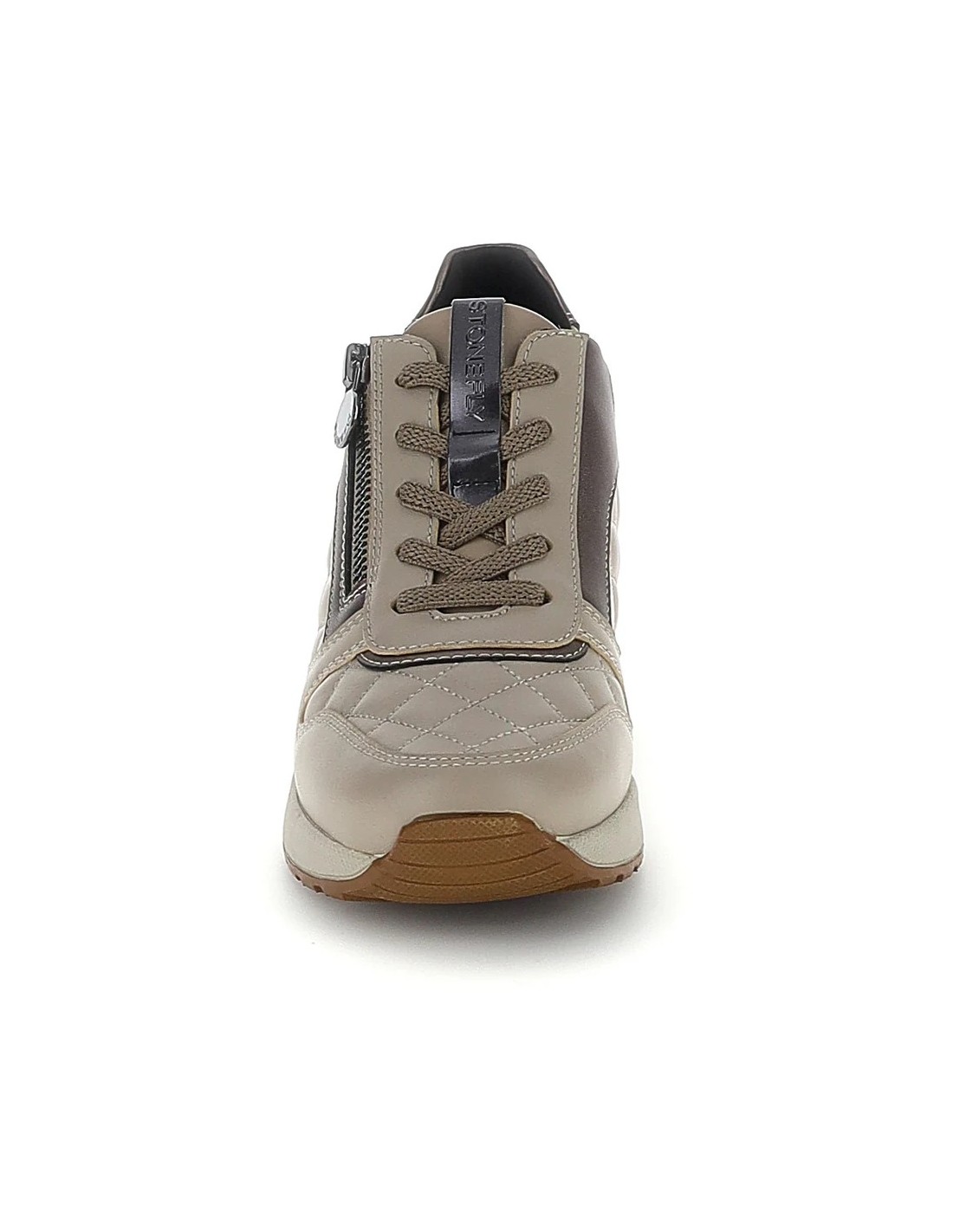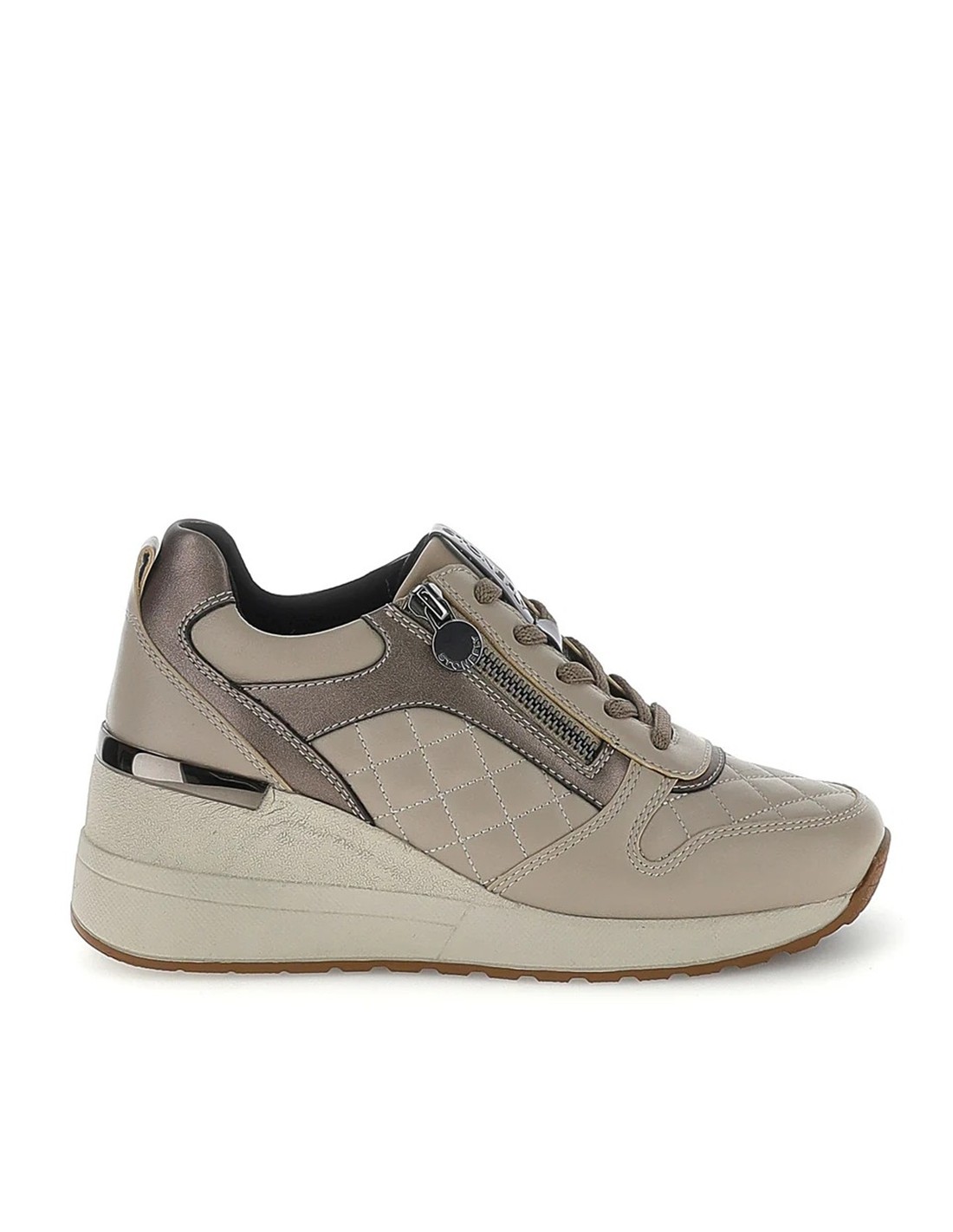 Descripción: Cómoda y elegante zapatilla mujer de Stonefly MINA-1 en suave piel texturizada beig y detalles piel metalizada. Ajuste con cremallera. Ligera cuña con tecnología BLUSOFT amortiguadora.