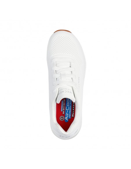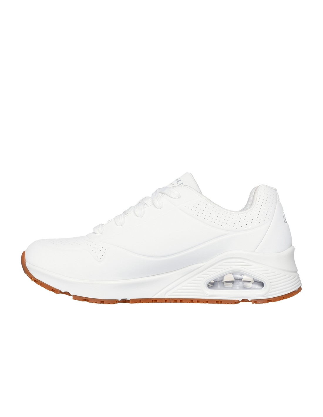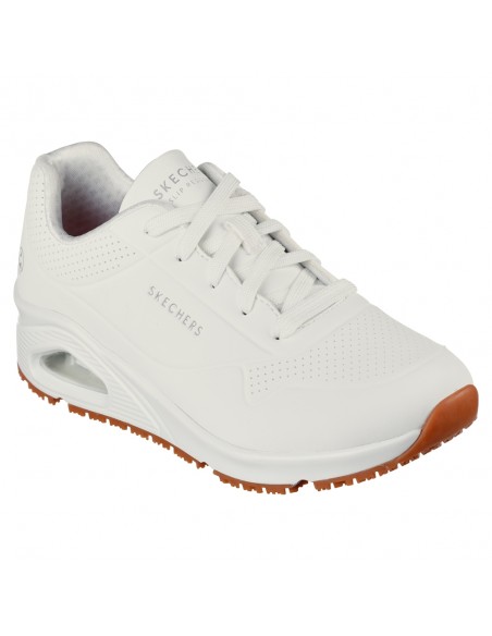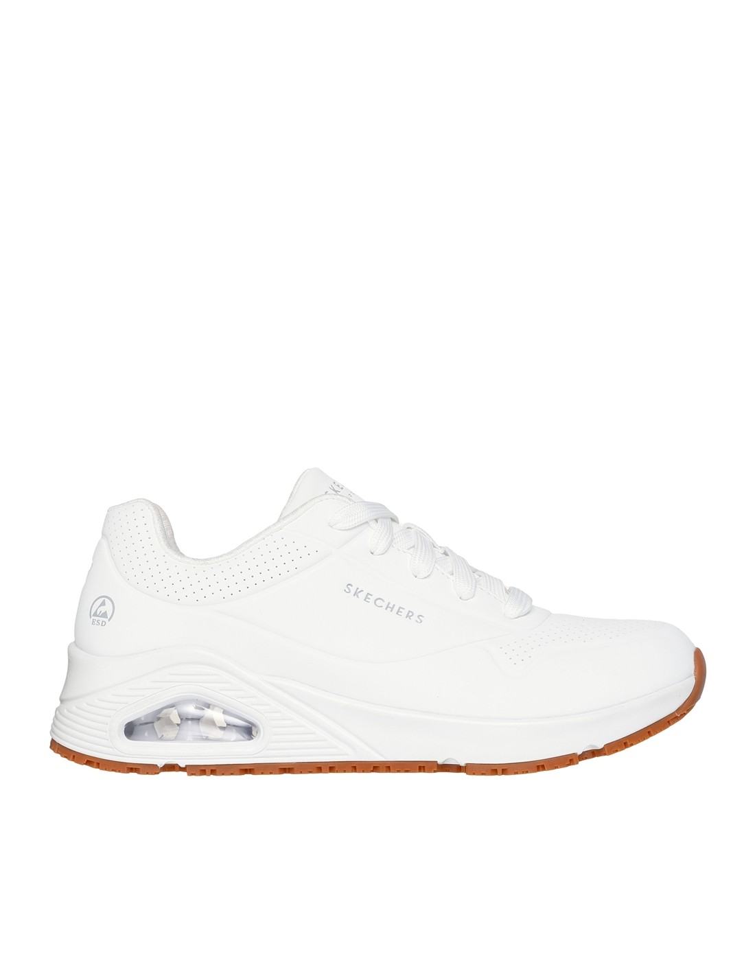 Descripción: Zapatilla cámara aire mujer WORK UNO AIR suave tejido aspecto piel blanca . Plantilla de confort SKECHERS Air Cooled Memory Foam® Piso antideslizante.
