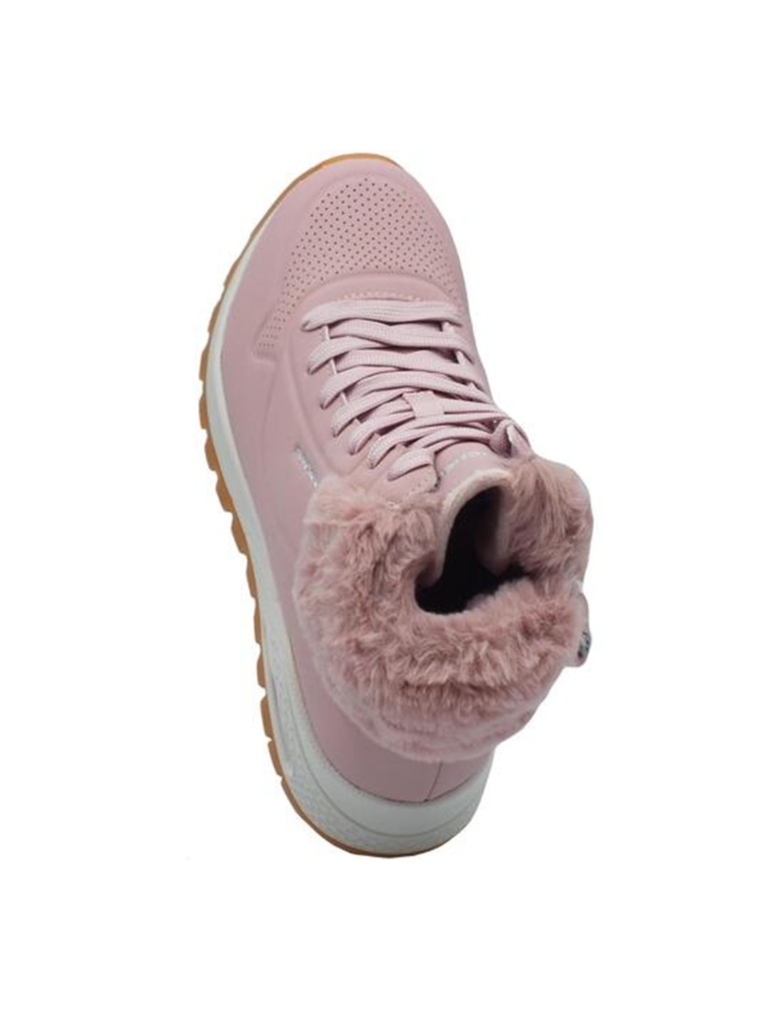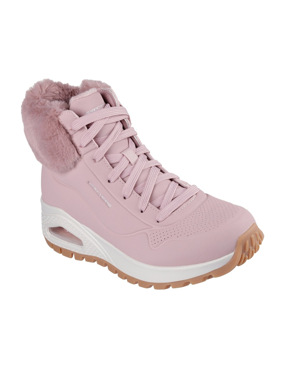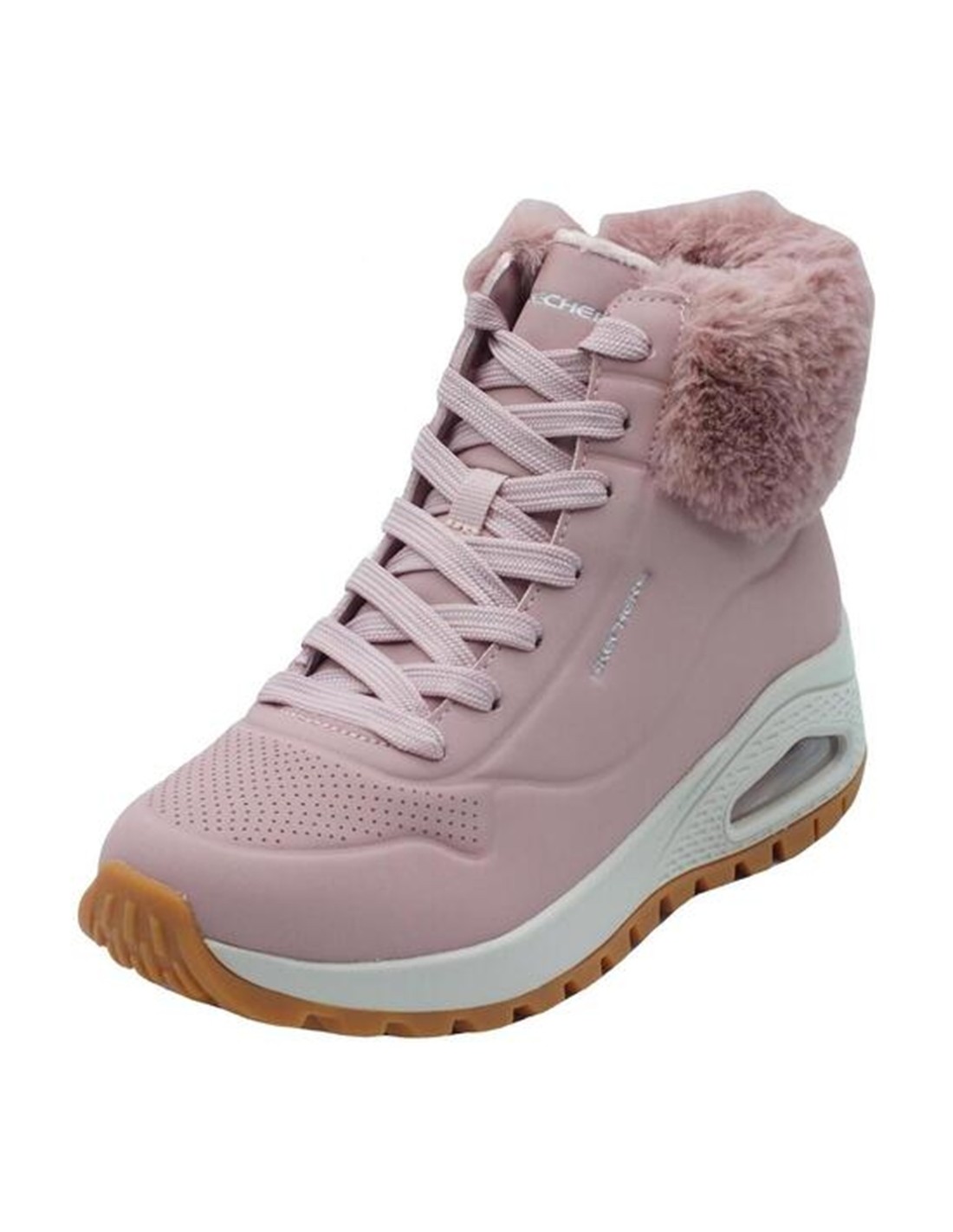 Descripción: Zapatilla urbana abotinada de mujer Skechers UNO RUGGED con entresuela de aire que proporciona amortiguación perfecta. En suave tejido con textura de piel rosa y detalle de pelo. Plantilla Air Coled Memory Foam