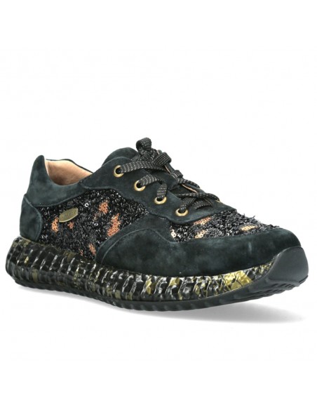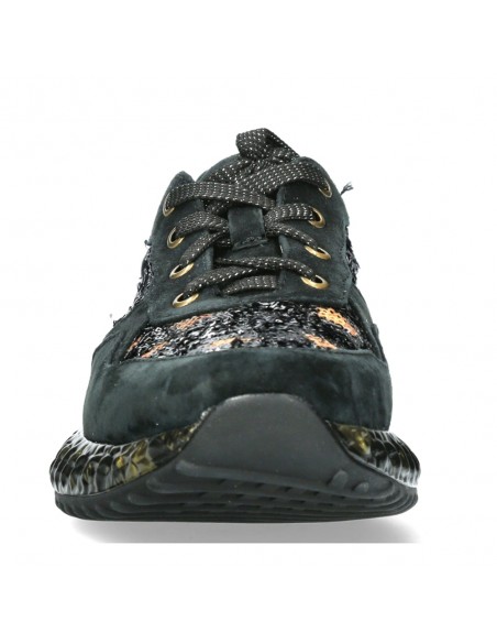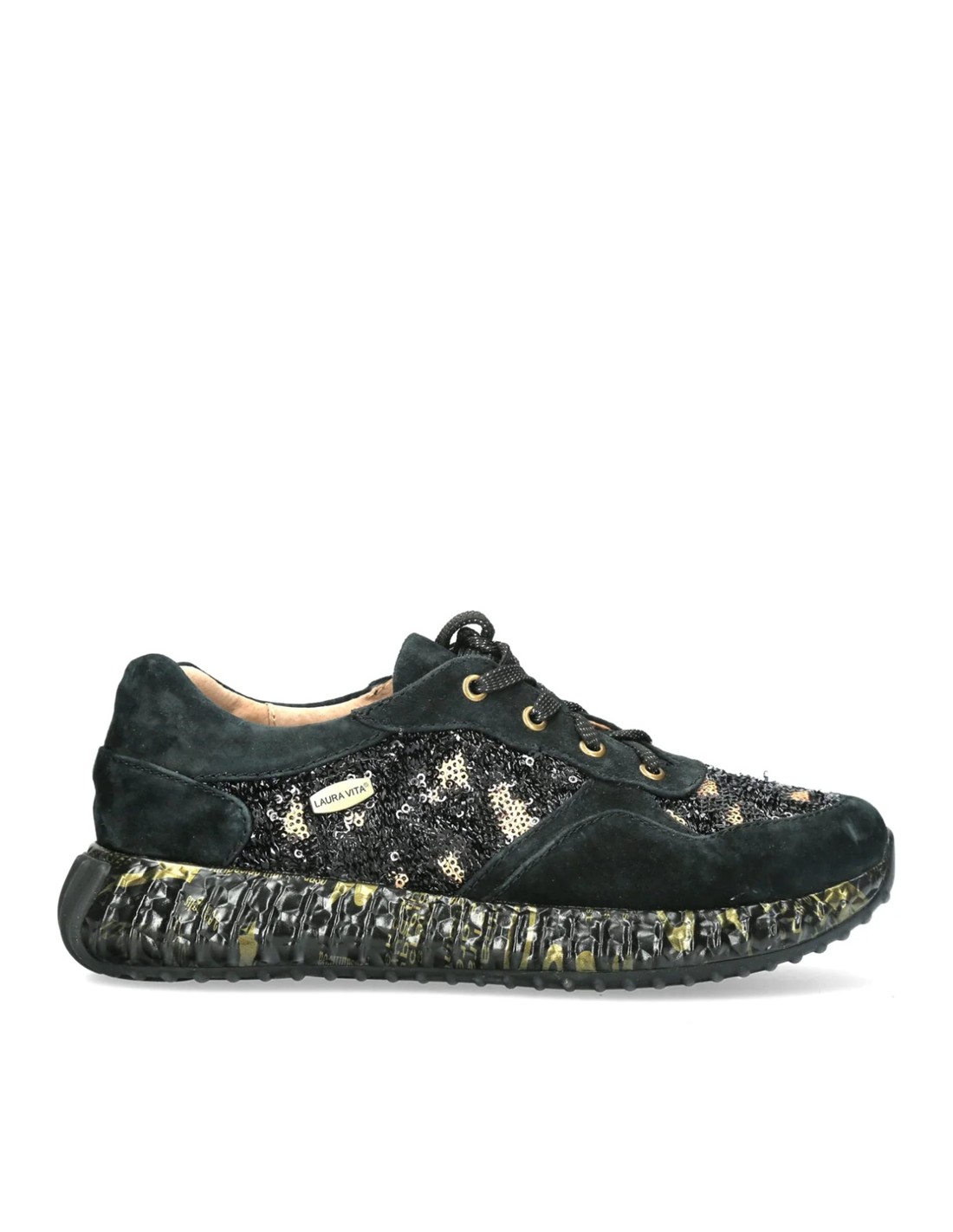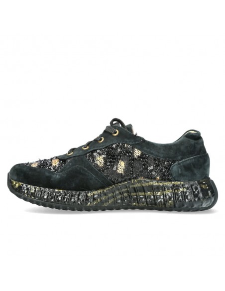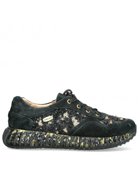 Descripción: Zapatilla mujer Laura Vita BURTON-05 en nubuck negro y paneles con glitter. Esta marca ofrece originalidad inspirada en la naturaleza y las artes, colorido nuevo cada temporada y comodidad.