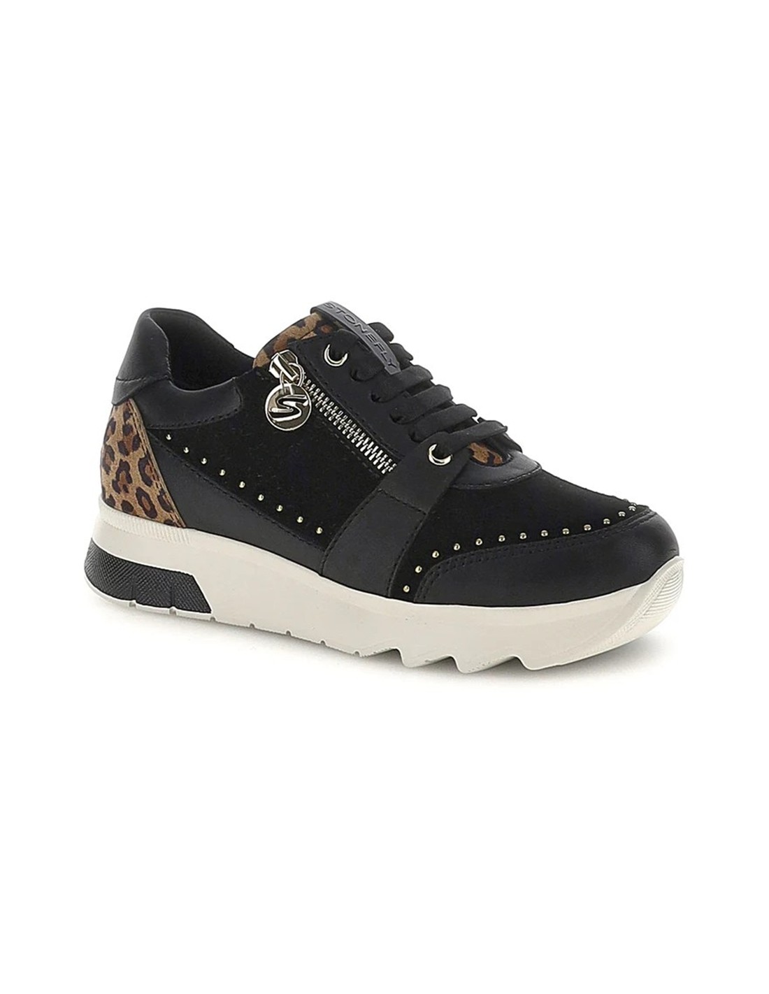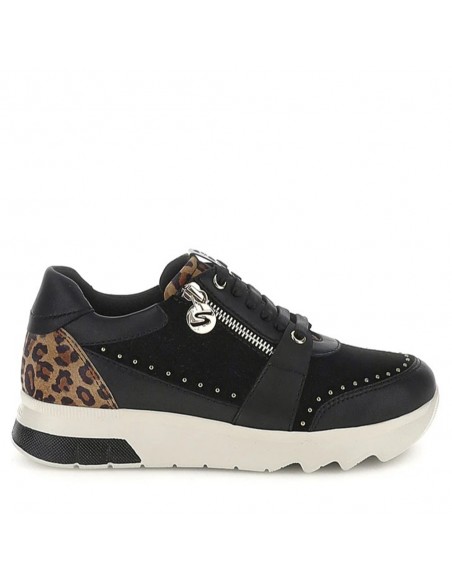 Descripción: Cómoda y elegante deportiva mujer de Stonefly SPOCK-47 en suave nubuck negro con refuerzos en piel y detalles pedrería. Ajuste cremallera. Ligera cuña con tecnología BLUSOFT con una amortigución perfecta.