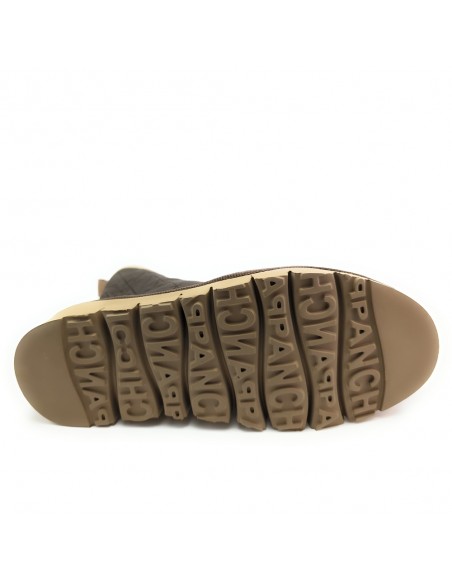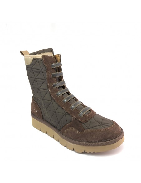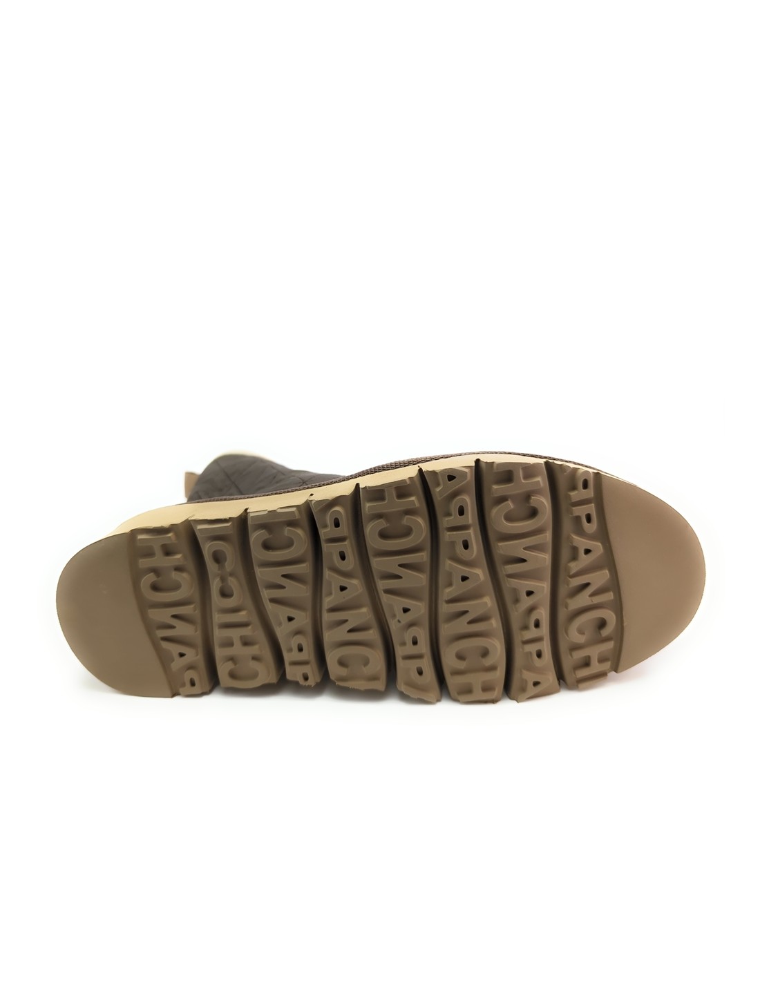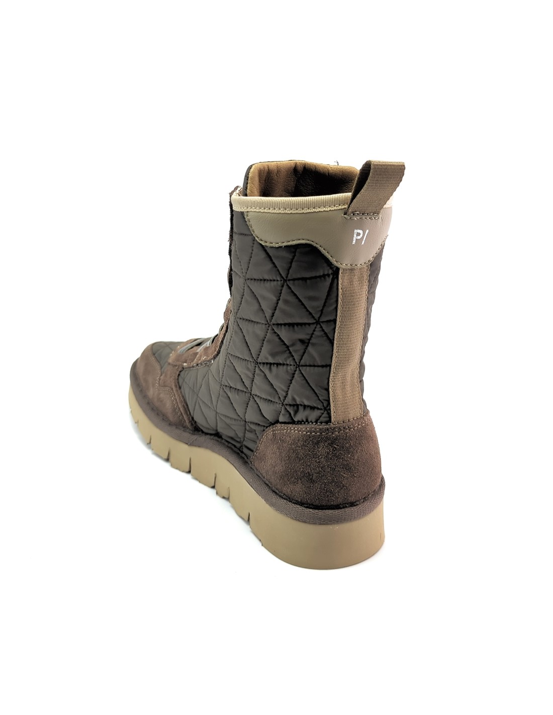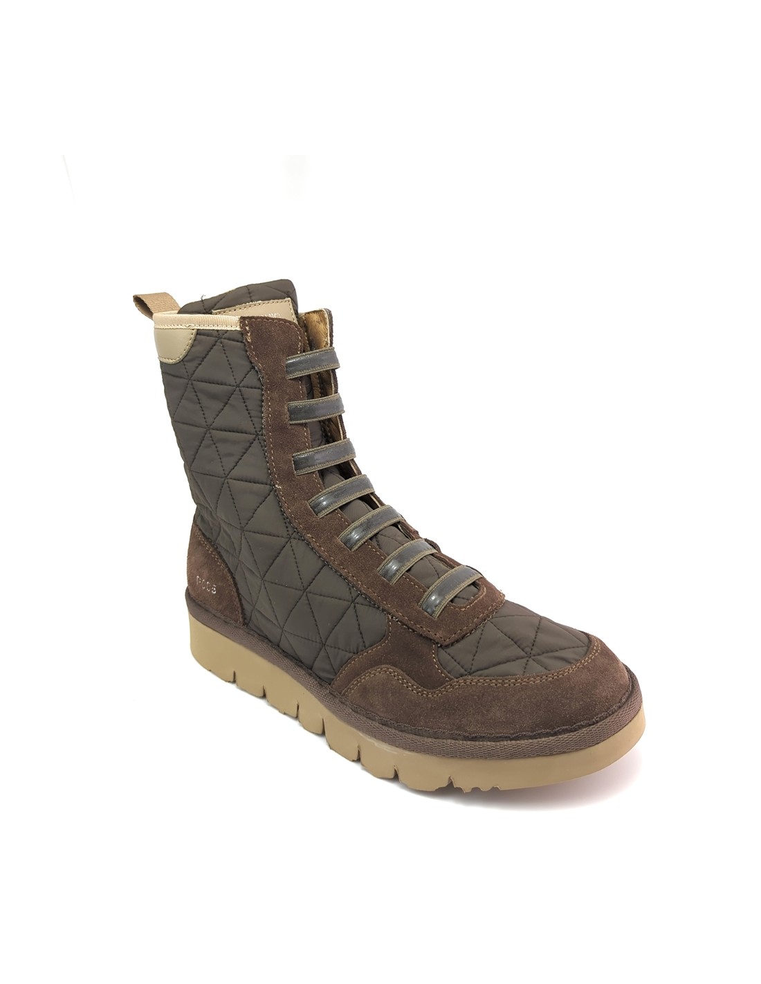 Descripción: Moda italiana artesana para mujer de PANCHIC, bota deportiva COMBAT de la línea P05, con naylon acolchado marrón, refuerzos en piel y forro cálido. Cordones elásticos. Cómodo piso ligero y flexible.