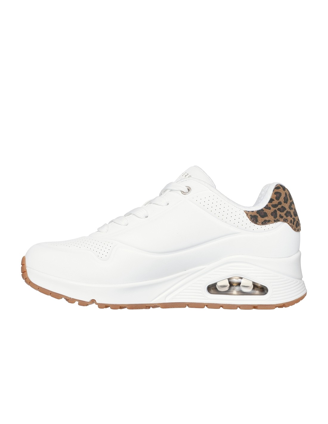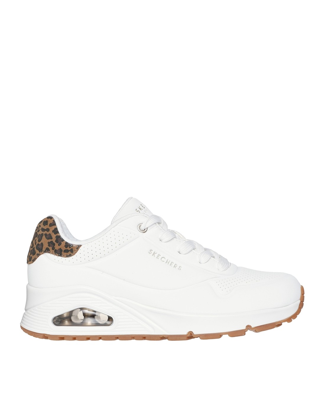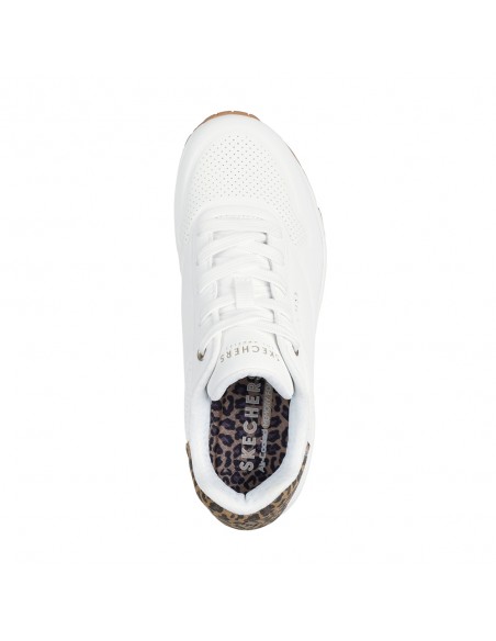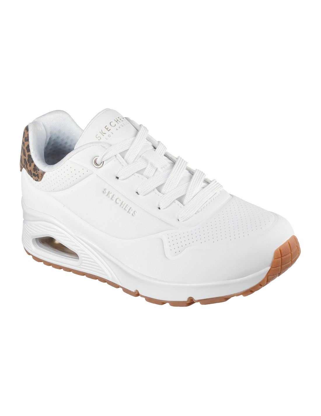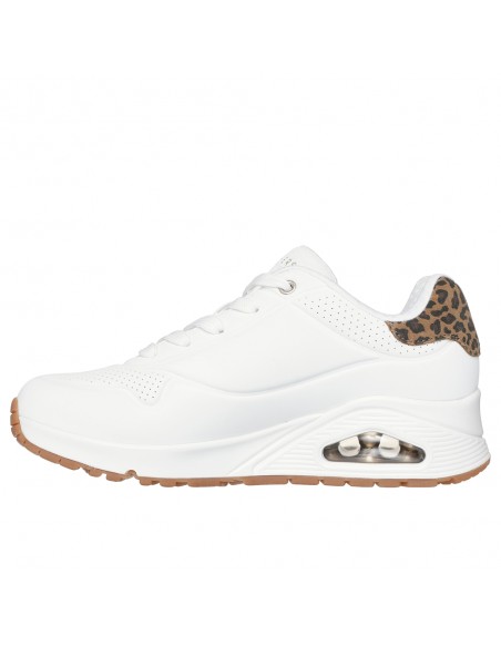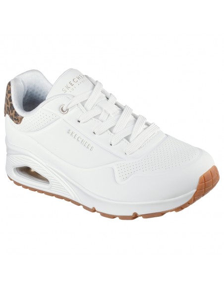 Descripción: Zapatillas urbanas de mujer Skechers UNO AIR JUNGLE NITE con entre suela de aire que proporciona amortiguación perfecta. En tejido blanco de aspecto piel y detalle animal print. Piso de goma antideslizante. Plantilla Air Cooled Memory Foam.