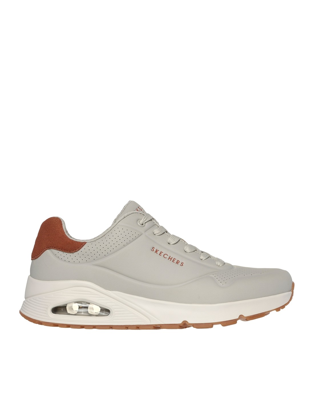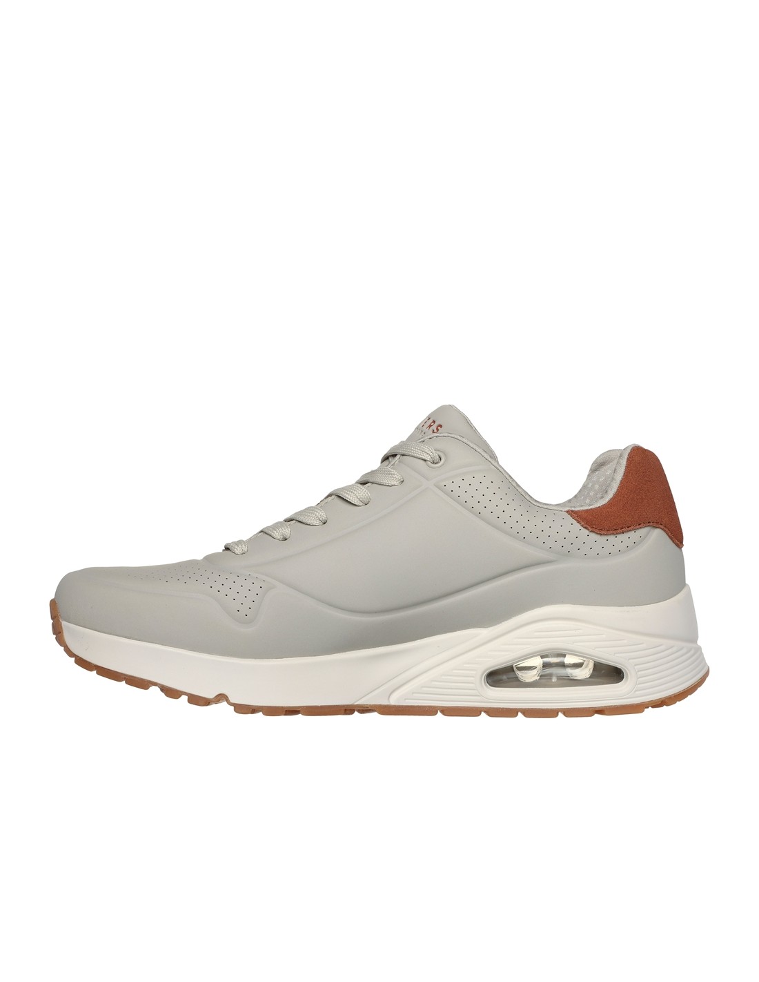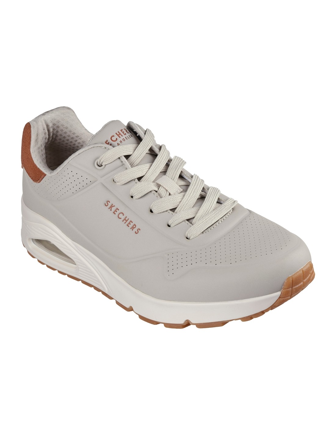 Descripción: Zapatilla hombre estilo running clásico Skechers UNO SUITED ON AIR de suave tejido aspecto piel lisa beig. Plantilla con tecnología Memory Foam acolchada. Suela con cámara de aire visible amortiguadora