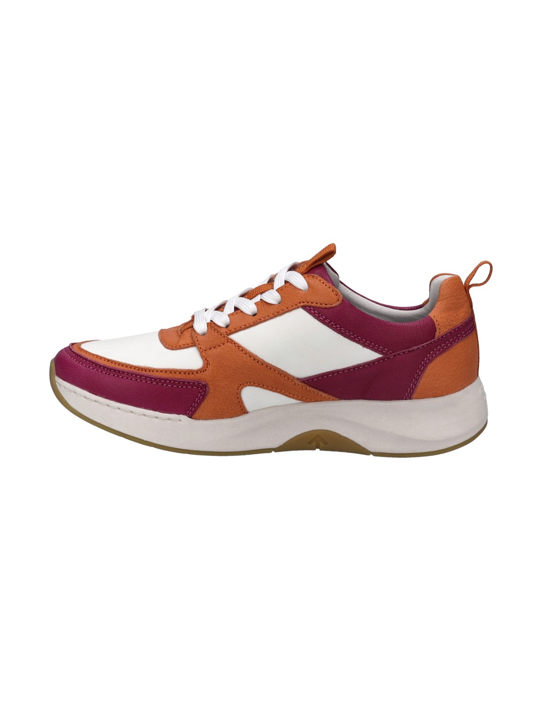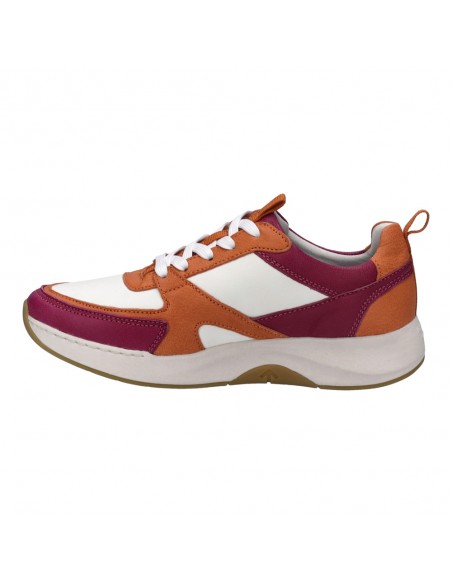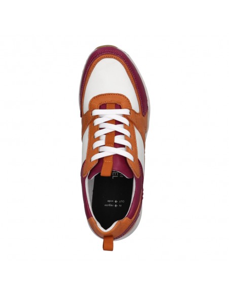 Descripción: Zapatilla deportiva mujer Josef Seibel ELLI-09 en suave piel blanca con detalle fuxia y naranja. Ajuste cordones. Línea iGoDynamick con doble plantilla extraíble para adapatar mejor el ancho y soporte en el arco