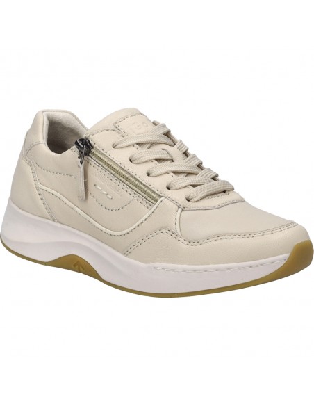 Descripción: Zapatilla deportiva mujer Josef Seibel ELLI-09 en suave piel beig. Ajuste cordones y cremallera. Línea iGoDynamick con doble plantilla extraíble para adaptar mejor el ancho y soporte en el arco.