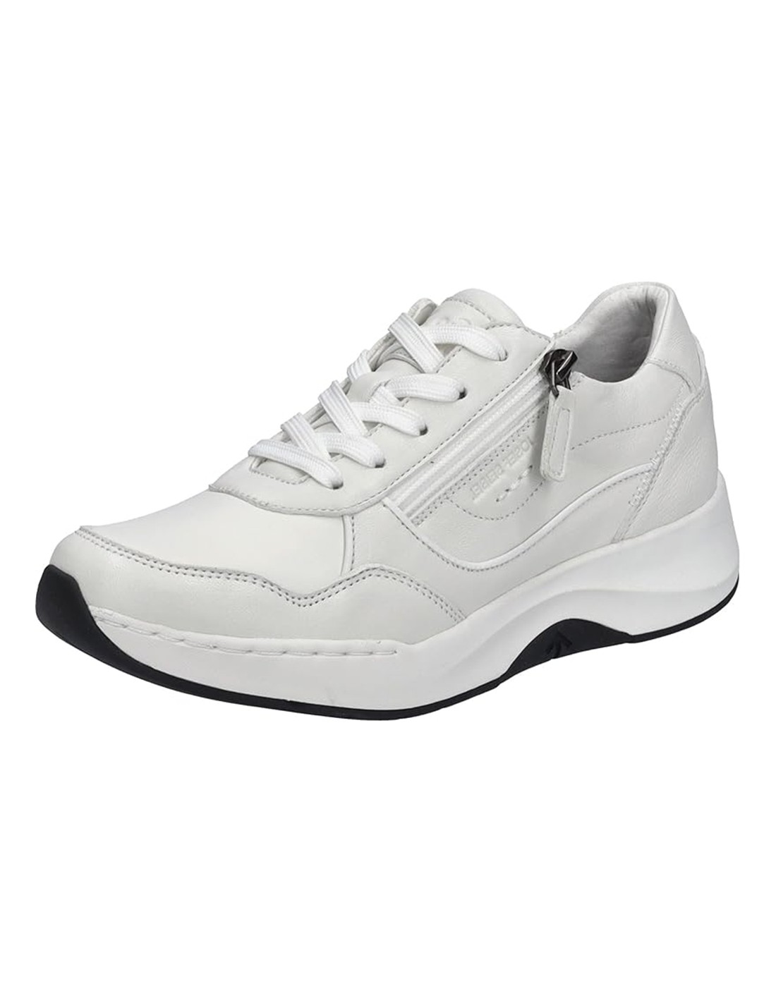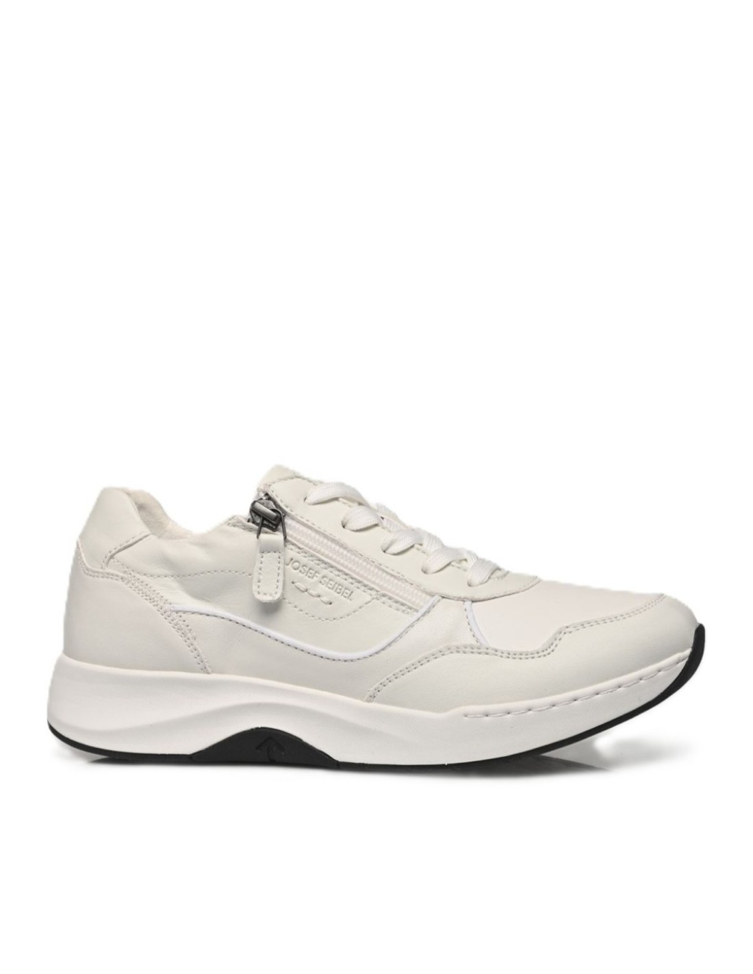 Descripción: Zapatilla deportiva mujer Josef Seibel ELLI-09 en suave piel blanca. Ajuste cordones y cremallera. Línea iGoDynamick con doble plantilla extraíble para adaptar mejor el ancho y soporte en el arco