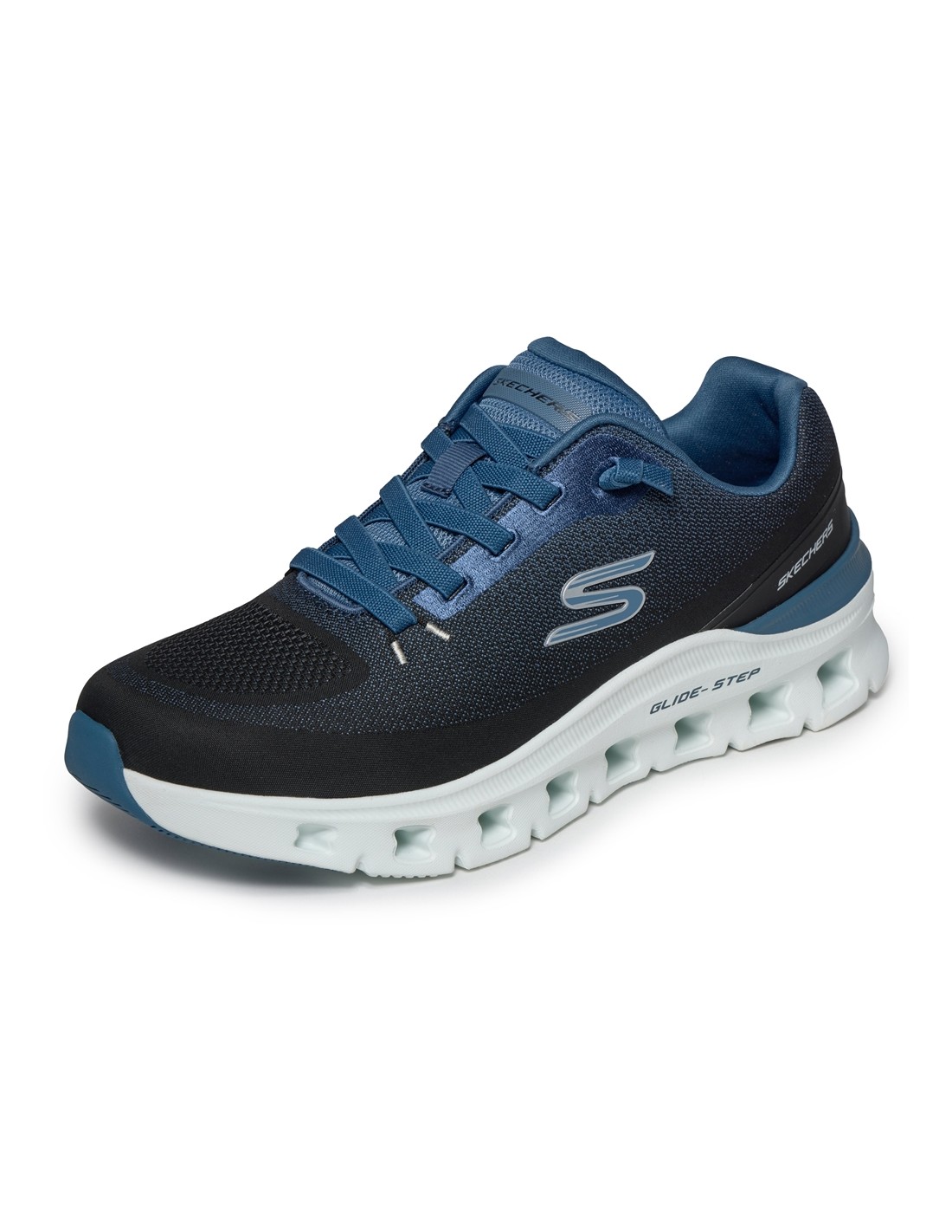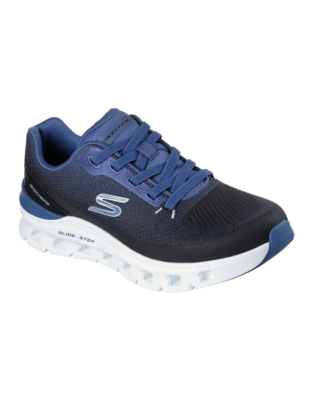 Descripción: Zapatilla hombre Skechers GLIDE STEP PRO - WAVERRA en malla azul. Plantilla Air-Cooled Memory Foam® Suela ligera geométrica Glide-Step® con perforaciones amortiguadora.