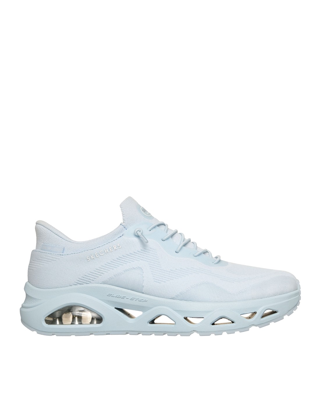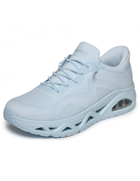Descripción: Zapatilla mujer Skechers SLIP-INS GLIDE-STEP® AIR GLIDERS de suave y cómodo tejido celeste. Diseño para calzar sin manos Heel Pillow Plantilla Air Coled Memory Foam. Amortiguación Glide-Step®