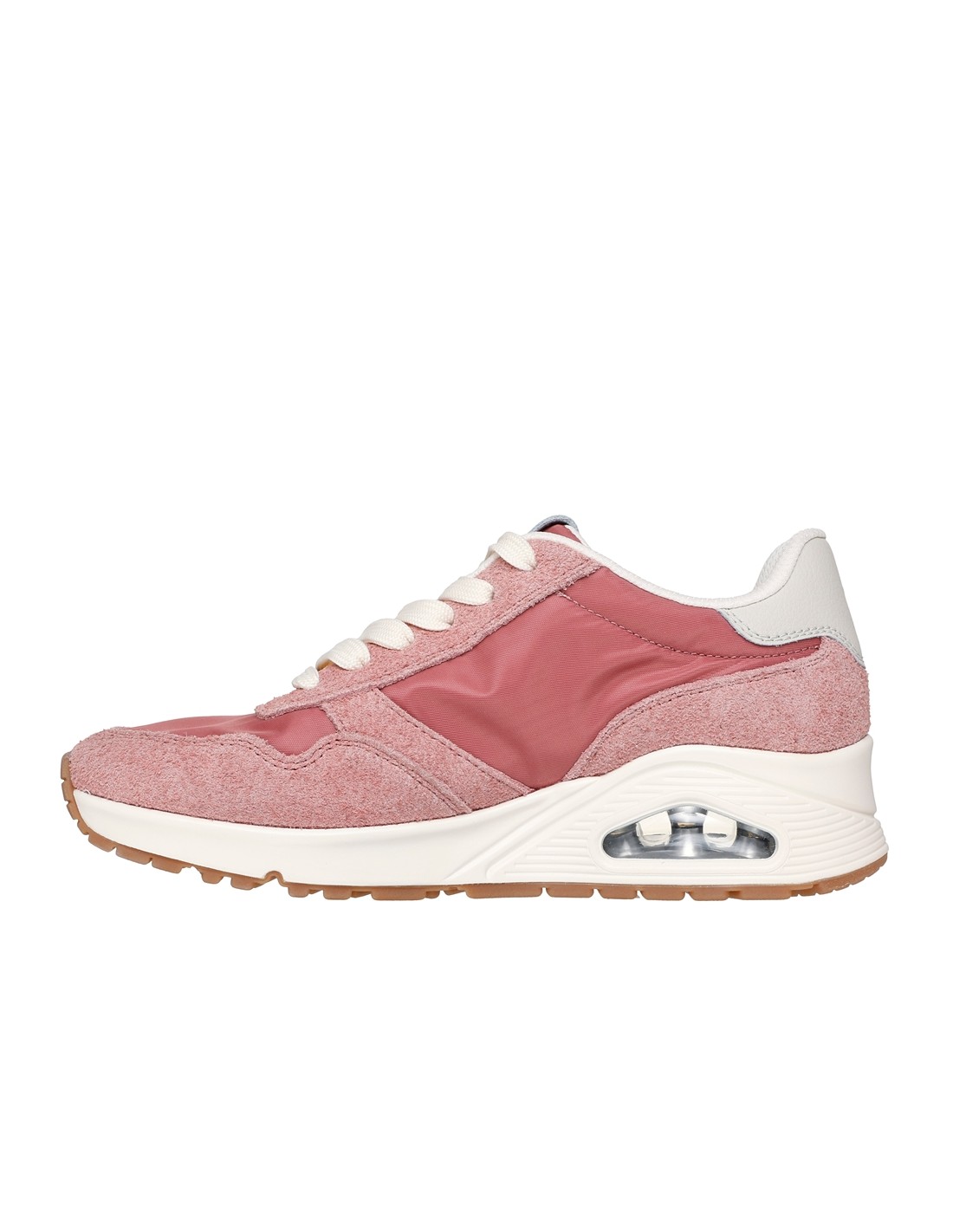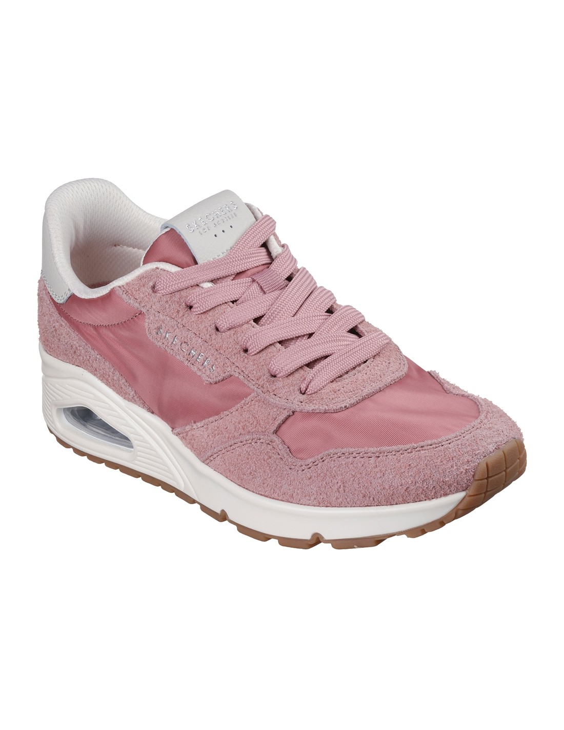 Descripción: Zapatilla mujer estilo running clásico Skechers UNO vintage ON AIR DAYZ de suave naylon rosa con refurzos en serraje. Plantilla Air Coled Memory Foam acolchada. Suela con cámara de aire visible amortiguadora.