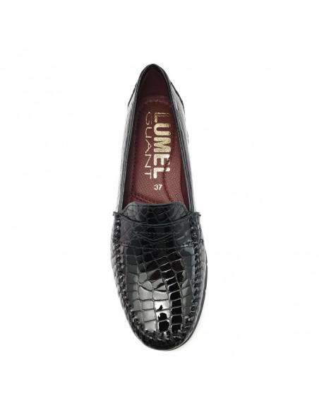 Descripción: Elegante mocasín mujer de LUMEL 2584 en suave coco negro. Plantilla extraible. Cómodo y ligero piso antideslizante.