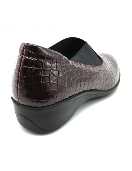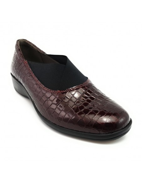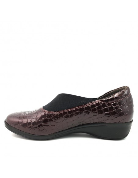 Descripción: Mocasín elegante mujer de LUMEL LEXI-41 en coco burdeos con elástico cruzado en el empeine para mejor ajuste. Plantilla extraible. Cómodo y ligero piso antideslizante.