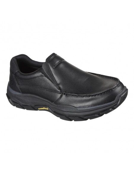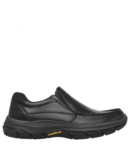 Descripción: Mocasín sport ajustable hombre de Skechers RESPECTED -CATEL en piel lisa negra. Cómoda plantilla Air-Cooled Memory Foam® y suela duradera y antideslizante Goodyear®.