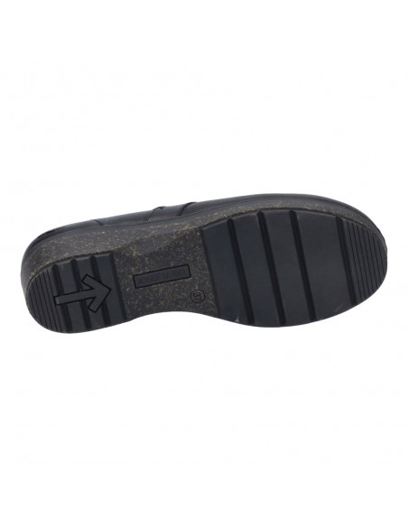 Descripción: Mocasín mujer Josef Seibel Darla-01 en suave piel negra. Plantilla anatómica móvil en piel como el forro. Cuña amortiguadora de corcho reciclado con patín de TR antideslizante.