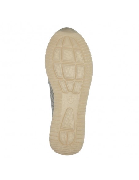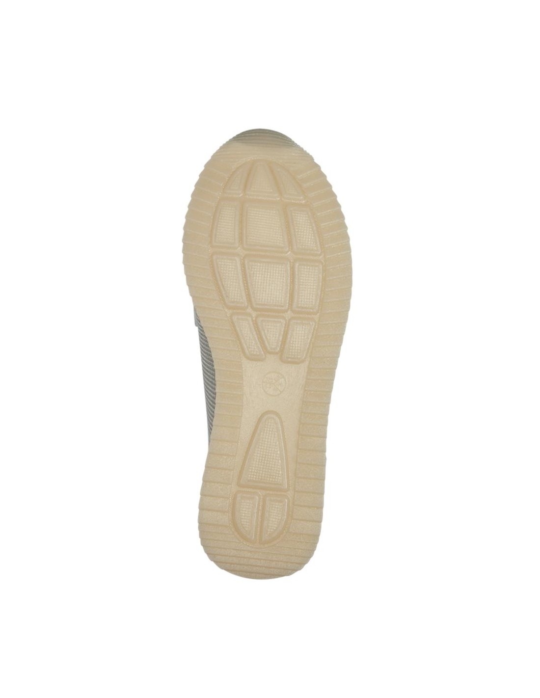 Descripción: Mocasín deportivo mujer con CERTIFICADO VEGANO 23766 de Jana en suave tejido texturizado vegano beig metalizado. Adorno metálico. Plantilla acolchada. Ligera y cómoda cuña flexible y antideslizante.