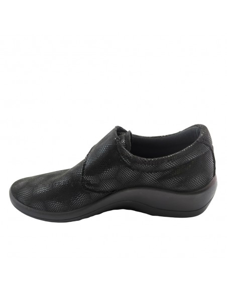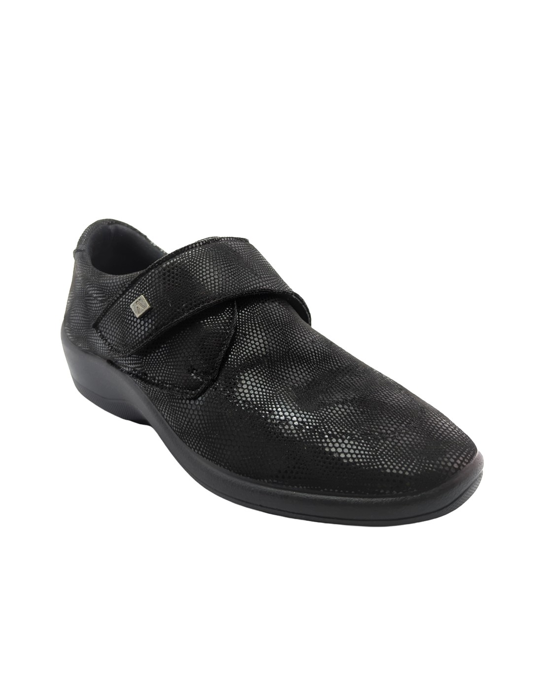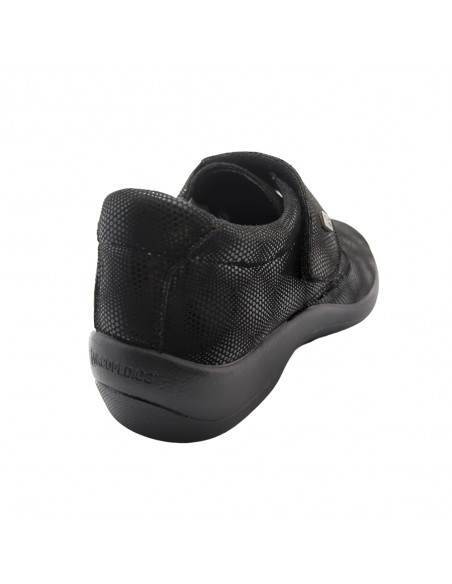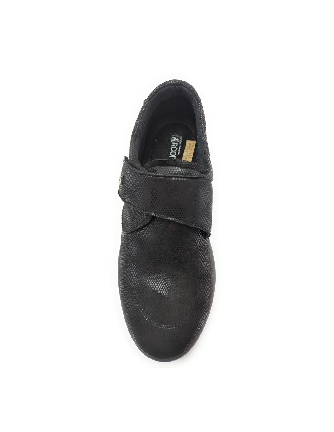 Descripción: Zapato con velcros mujer Arcopedico REPOVESI en licra elástica transpirable negra con un toque metalizada, reciclada, vegana e hidrofugada. Suela PU orgánico super ligero. Sistema Doble Arco plantar para mejorar el apoyo..