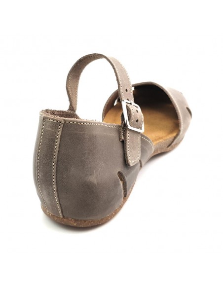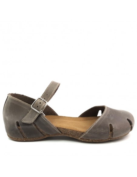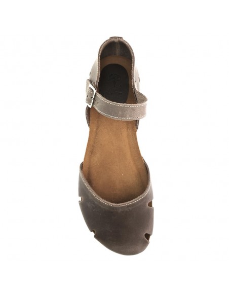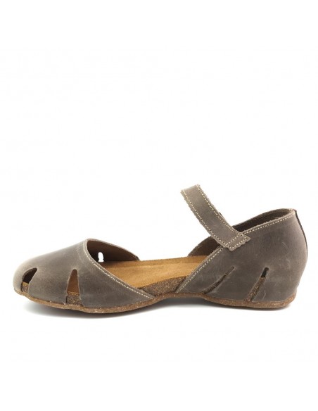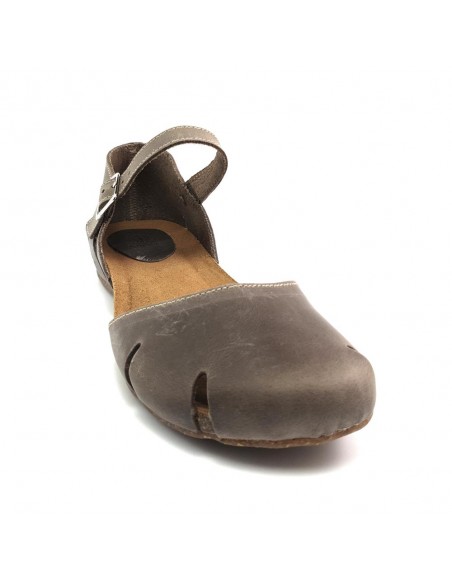 Descripción: Sandalia mujer INTERBIOS 4449 cerrada de la punta, con talonera y ajuste de tira con hebilla en piel natural marrón. Cómoda planta anatómica en piel estilo BIO. Piso de goma antideslizante.