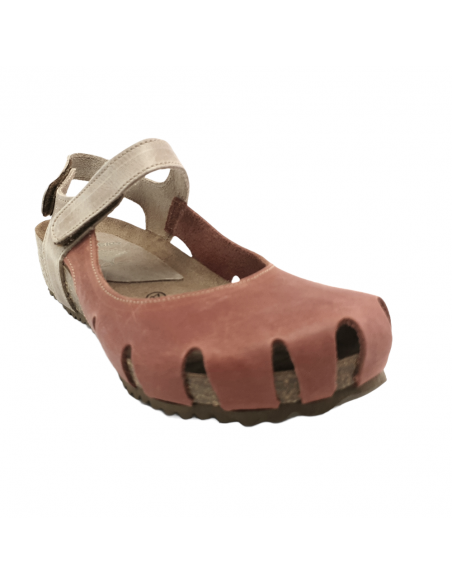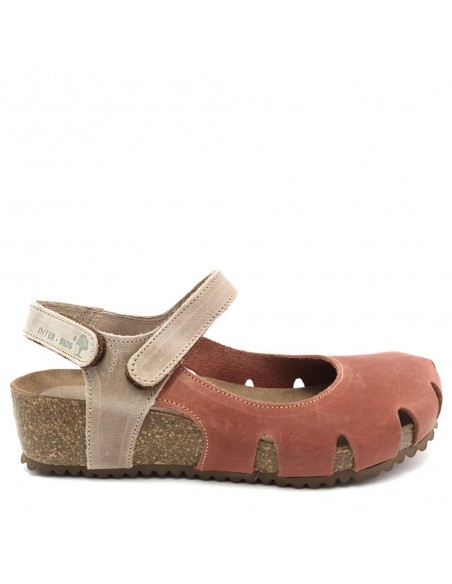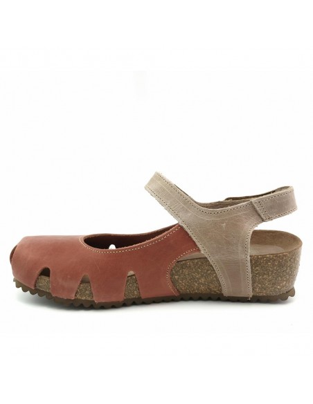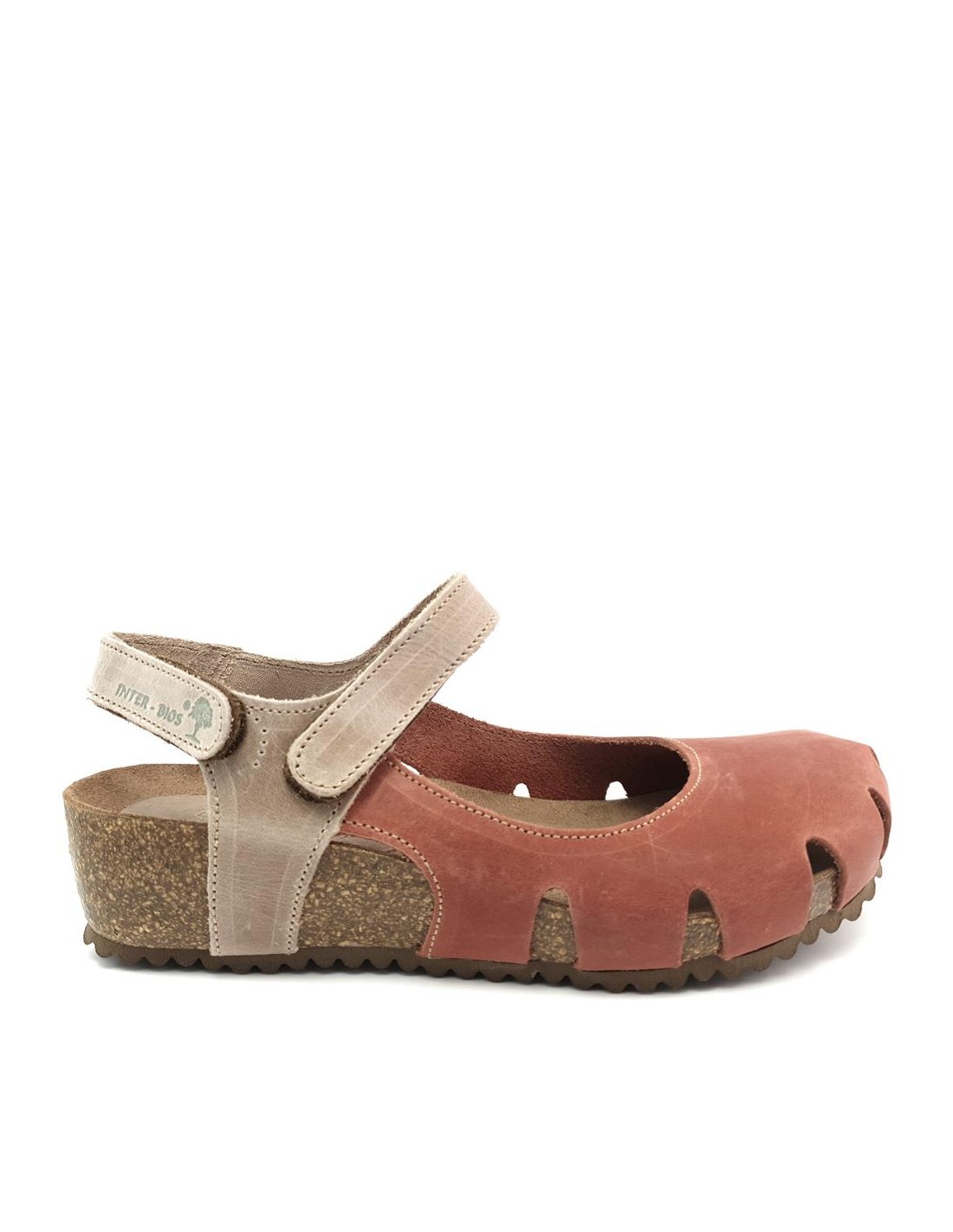 Descripción: Sandalia mujer INTERBIOS 5326 cerrada de la punta. Cómoda planta anatómica en piel estilo BIO. Original combinación en dos tonos teja y beig. Ajuste con cierre de velcro. Piso de goma antideslizante.